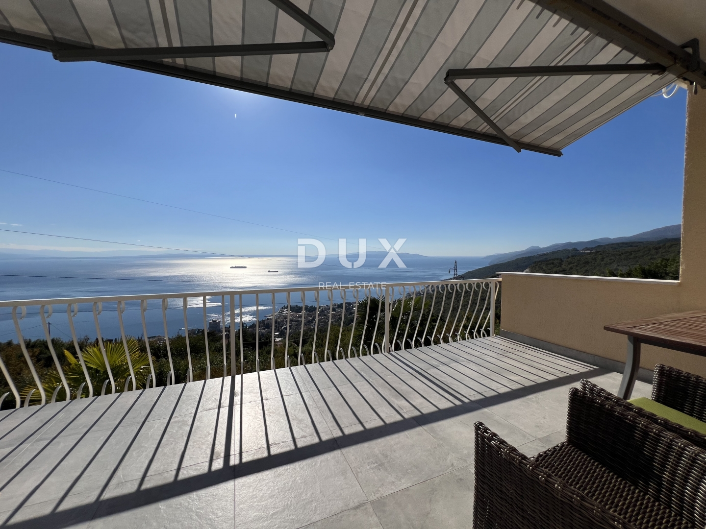 Na samo 1.300 metara zračne linije od centra Opatije, elitnog turističkog gradića poznatog po elegantnim vilama, predivnim parkovima i šetnici uz more, nalazi se ovaj iznimno atraktivan stan s panoramskim pogledom na Kvarnerski zaljev.