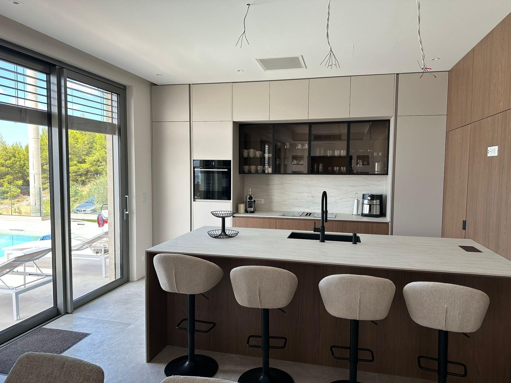 Vila je opremljena privatnim bazenom, prostranim terasama i balkonima, te luksuznim interijerom. Mirna lokacija okružena je mediteranskim zelenilom, a nekretnina je pogodna i za stanovanje i za turistički najam....
