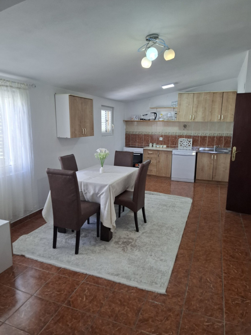 Posjeduje dnevni boravak sa kuhinjom i trpezarijom, kupatilo, dve spavace sobe i terasu. Idealno za porodicu.