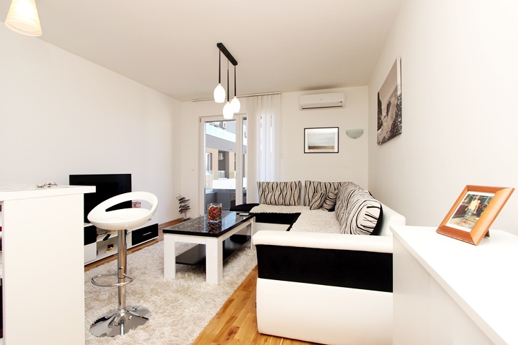 Centralno grijanje. Vanjska PVC stolarija. Unutrašnja drvena stolarija. Parket u dnevnom boravku. Keramičke pločice u predsoblju, kuhinji, kupatilu i na balkonu. Balkon. Blinda ulazna vrata. Klima uređaj. CATV. Internet. Telefon. Interfon.