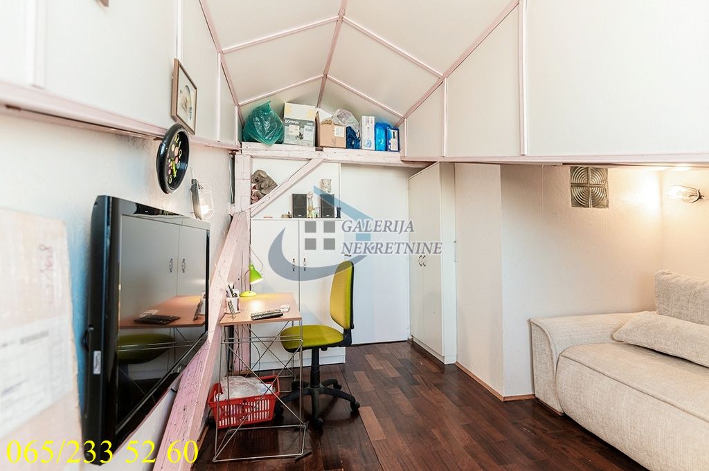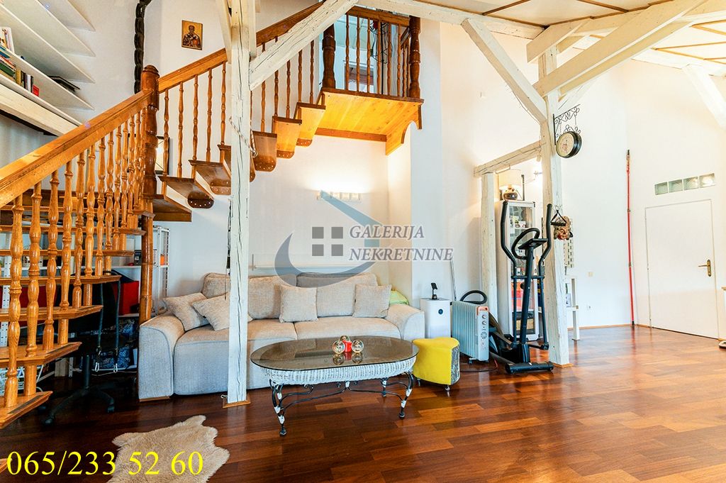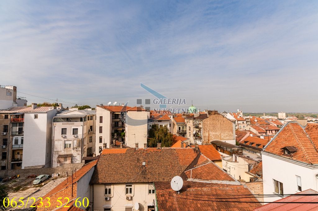U prilici smo da vam ponudimo šarmantni trosobni duplex u potkrovlju salonske četvorospratne zgrade bez lifta, zidane pre Drugog svetskog rata. Zgrada je u dobrom stanju spolja i iznutra i redovno održavana. Stan je dvostrano orijentisan jugoistok-severozapad i odlično osvetljen dnevnim svetlom. Adaptibilan, prostorije su vrlo funkcionalno raspoređene pa je prostor maksimalno iskorišćen. Na donjem nivou je dnevni deo a na gornjem spavaći sa dve spavaće sobe, kupatilom i prelepom velikom terasom sa lepim, širokim i otvorenim pogledom preko krovova Dorćola, Save i Dunava i ka prostranoj vojvođanskoj ravnici. U odličnom je stanju, sređen i uređen sa puno ljubavi i ukusa i značajna ulaganja nisu neophodna. Grejanje je na struju (TA) pa su računi za infostan niski. Izvodljiva je ugradnja lifta.