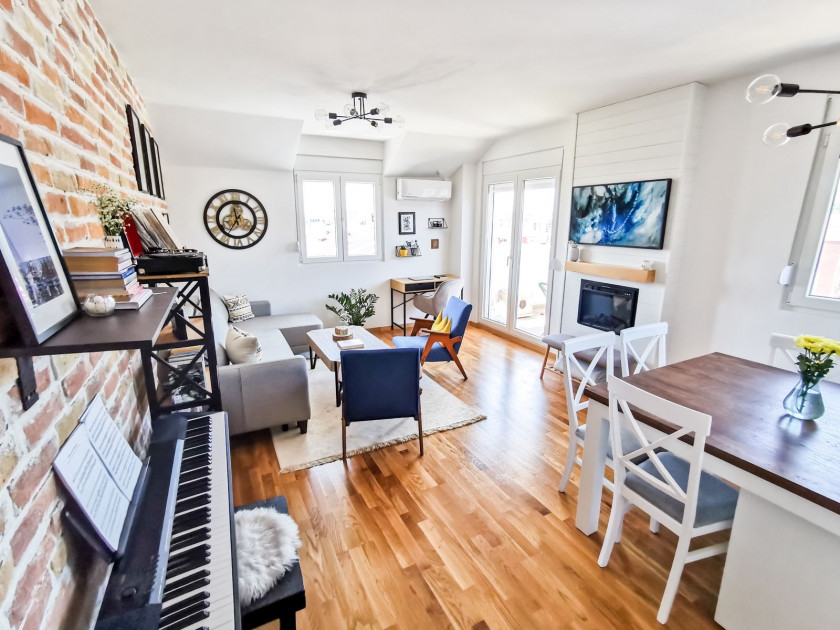 • Luksuzno namješten sa pažljivo odabranim namještajem, kao i ugradnim plakarima i kuhinjom po mjeri