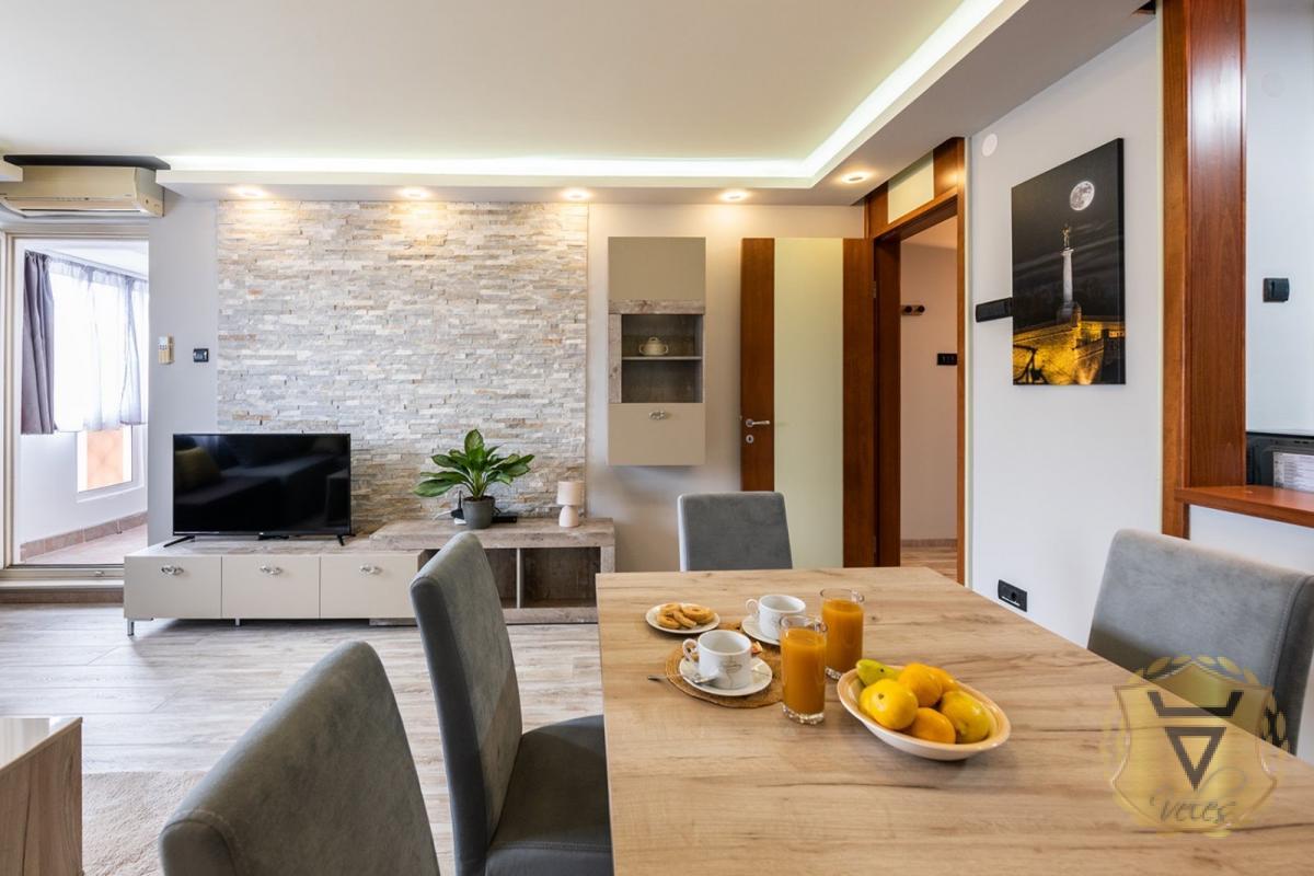 Kvadratura je 60 kvadrata, nalazi se u zgradi sa liftom. Stan se sastoji iz predsoblja, prostrane dnevne sobe i trpezarije, kuhinje, kupatila, spavaće sobe, ostave, zastakljene lođe, a od uređaja ima veš mašinu, mašinu za sušenje veša, mašinu za pranje sudova, frižider, zamrzivač, mikrotalasnu rernu, male kućne aparate, dosta posuđa, posteljine i peškira koje mogu da stavim na raspolaganje, ukoliko je zakupac zainteresovan.