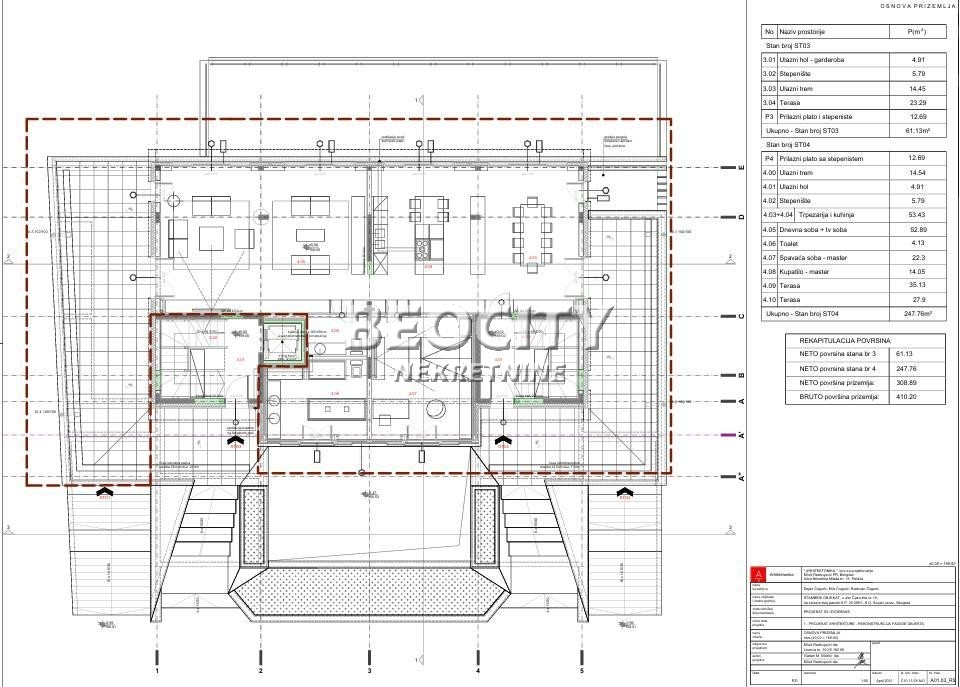 Opis: Agencijski ID: 123820, I/II, spratna, 2, struja, lift, terasa(4), uknjižen, nov luks, ulaz dobar, novogradnja, fasada nova, garaza, parking, dvorište/bašta, pogodan za pp, deljiv, cela. Lux nekretnina. Mogucnost podele na 4 stana, koji bi cinili celinu. Lokacija. Objekat poseduje 5 garaza. izuzetna, bezbedna i luksuzna. Neophodni zavrsnim radovi unutar kuce, izuzetan kvalitet gradnje, estetike i komfora. Više informacija na: www.beocitynekretnine.rs Agencijska provizija 2%. Telefoni: 060/555-3901 • 011/319-2323. Kontakt van radnog vremena: kancelarija@beocitynekretnine.rs