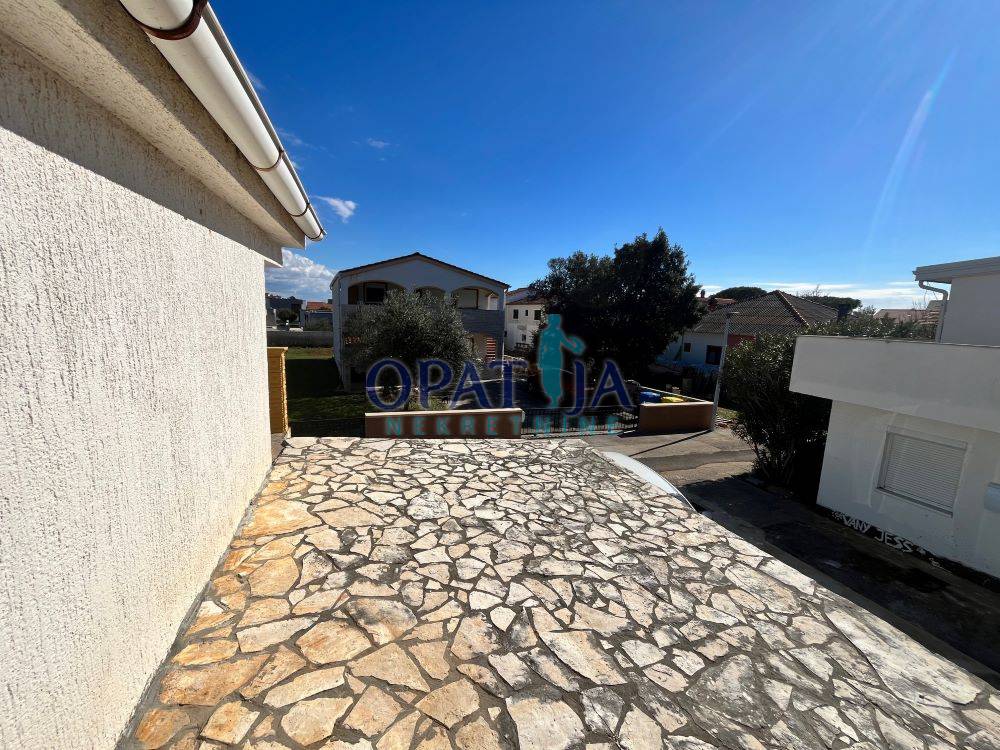Posebna prednost je mogućnost uređenja prostrane krovne terase iznad garaže. Dalmatinske kamene pločice već su postavljene, potrebno je još samo ugraditi ogradu. S terase se pruža lijep pogled na okolinu.