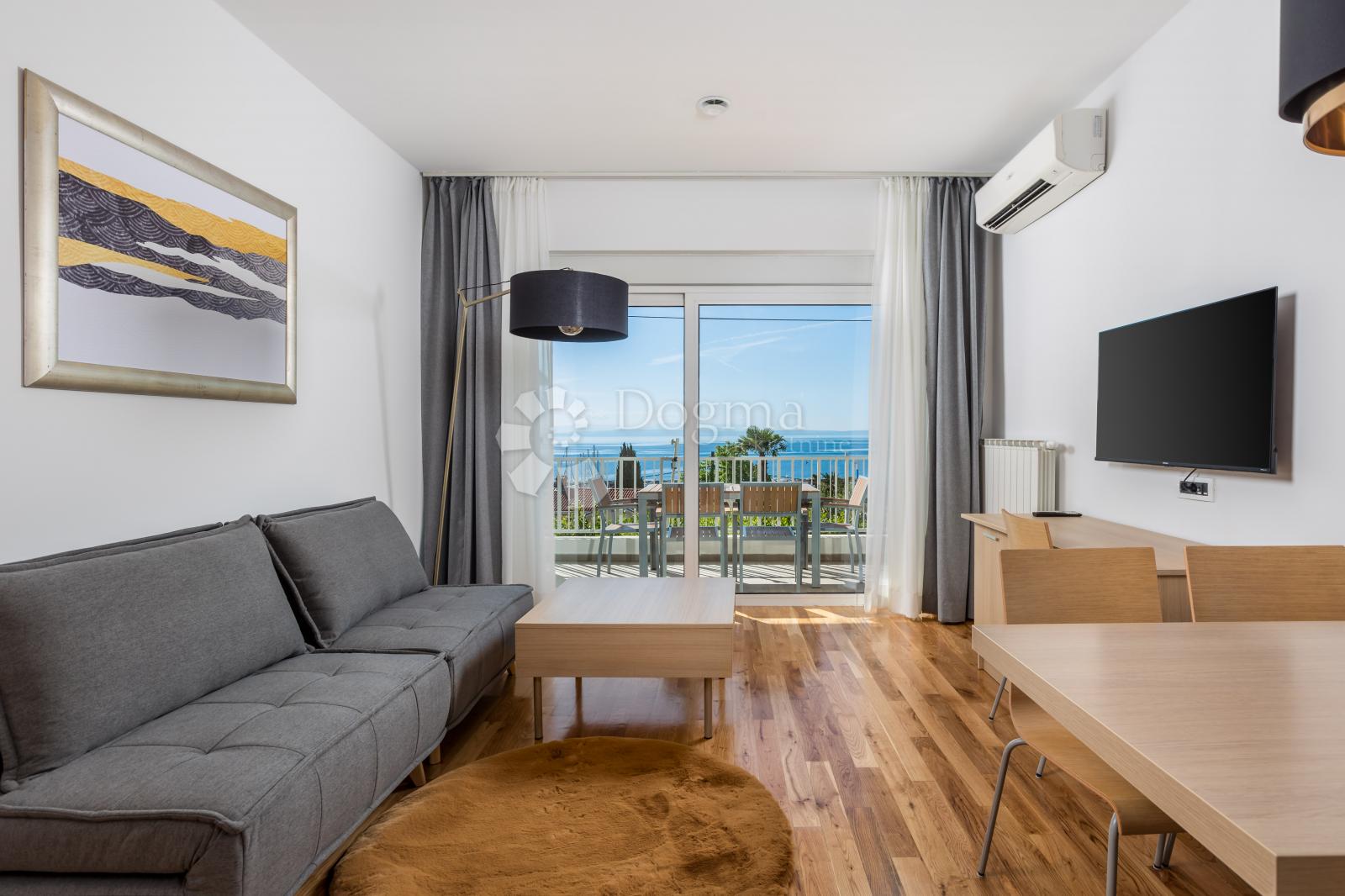 Opis: Ičići stan s panoramskim pogledom na more,bazenom i vrtom na korištenje.Parking mjesto unutar okućnice.Vrhunski uređen i namješten stan.Blizina mora i sadržaja.Stan se sastoji od jedne spavaće sobe,dnevnog boravka s kuhinjom,kupaonice,hodnika i balkona.