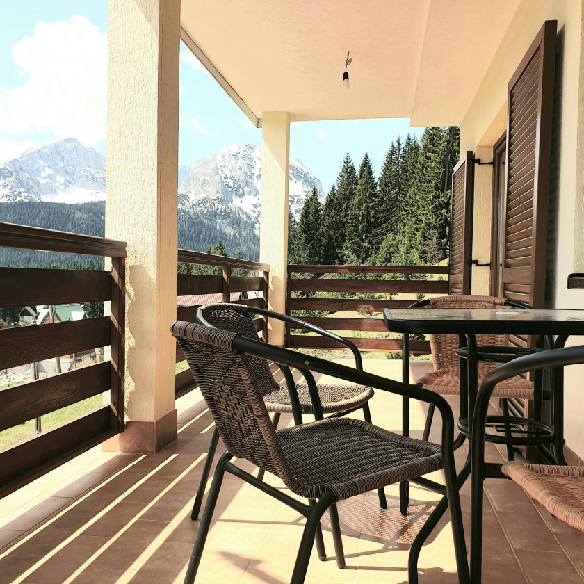 Sa terase se pruža prelijep pogled na vrhove Durmitora.