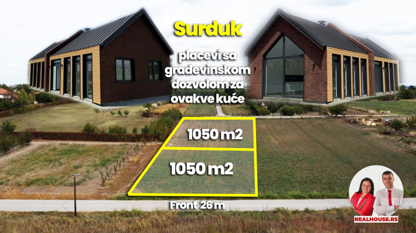 Opis: Pred Vama su dve građevinske parcele svaka sa građevinskom dozvolom i gotovim projektom za prelepe kuće.