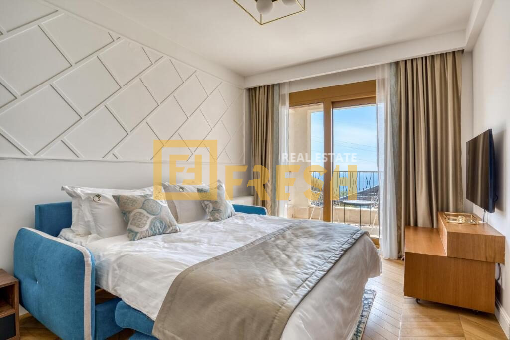 Opis: Jednosoban lux namješten stan sa otvorenim i trajnim pogledom na more, površine 58m2, u ekskluzivnom kompleksu zatvorenog tipa, Budva.