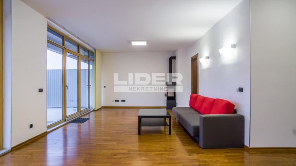 Opis: Izdaje se moderna vila na Dedinju, odlično pozicionirana, pogodna za stambeni i poslovni prostor sa dobrim pristupom frekventnim delovima grada. Vila je ukupne površine od 400m², podeljena na tri nivoa, ima dva zasebna ulaza. Sastoji se od dve dnevne sobe sa modernim kaminskim pećima, dve kuhinje, sedam soba, pet kupatila (Hansgrohe, Villeroy & Boch), saune, ugradnih plakara, četiri terase, dvorišta i parkinga sa čak deset parking mesta. Kuća ima savršenu izloženost dnevnom svetlu kroz velika staklene površine tako da je ispunjena prirodnom svetlošću tokom celog dana. Sistem grejanja je baziran na energetski efikasnim toplotnim pumpama, kuća ima podno grejanje (hrastov parket) i fan coil (ventilator konvektor) uređaje. Opremljena je sa sigurnosnim kamerama, 24/7 video snimanjem (moguć pristup preko interneta), dvoja sigurnosna vrata, dva videofona i metalnom sigurnosnom ogradom sa kapijom. Kuća je opremljena SMART LED rasvetom (kontrola osvetljenje daljinskim upravljačem ili aplikacijom) i instaliranim kablovima za računarske mreže. Poželjno dugotrajno rentiranje.