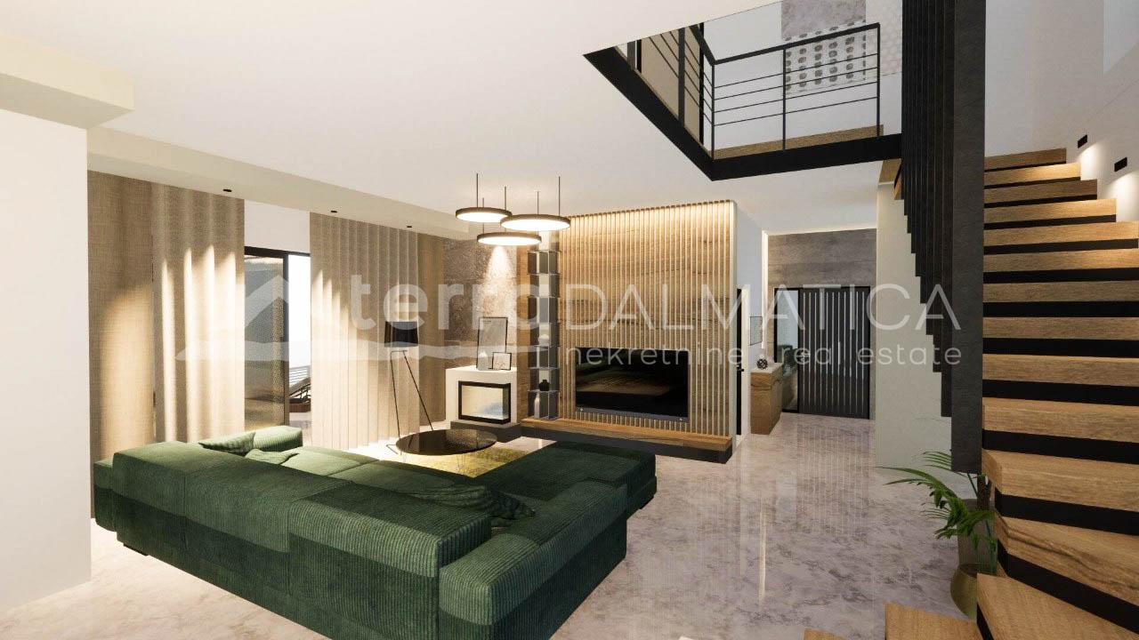Opis: Prodaje se u okolici Rogoznice lijepa vila jedinstvenog oblika, smještena u uvali naslonjenoj na otvoreno more. Udaljena je samo 100 metara od mora i pruža prekrasan pogled na more sa svakog kata. Pristup do vile je uređenom cestom, a sama vila dominira prostorom. Vila je trenutno u izgradnji i očekivani završetak radova je do ljeta 2025 g. Vila se prodaje namještena. Opis nekretnine: Prizemlje: Glavni ulaz sa sjeverne strane vile. Ulazni prostor s garderobom, tehnička prostorija i velika kupaonica. Iz ulaznog prostora dolazi se u prostrani dnevni dio otvorenog koncepta površine preko 50m2. U dnevnom dijelu se posebno vodilo računa o nesmetanoj komunikaciji s vanjskim prostorom i prekrasnim pogledima koji su omogućeni velikim staklenim stijenama. Ispred dnevnog dijela je prostrana terasa s infinity bazenom, koji je isto na razini prizemlja. Veliki infinity bazen je građen u obliku slova U ima i jacuzzi područje s hidromasažnim pumpama. S bočne strane vile smještena je ljetna kuhinja s pergolom koja će omogućavati ugodni hlad. Posebna zanimljivost vile je galerijski prostor s lebdećim stubištem od nehrđajućeg čelika koje vodi do prvog i drugog kata....