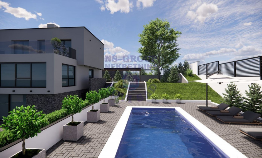 Opis: Luksuzno naselje " MAGNOLIA GARDEN" na uzvišenju, u srcu prirode sa prelepim pogledom na kompletan Novi Sad, Dunav i obronke Fruške Gore. Osnovna misao prilikom realizacije ovoga projekta je bila spoj luksuza i komfora, mira i elegancije. U okviru " MAGNOLIA GARDEN "komplexa se nalazi 5. luksuznih spratnih kuća sa bazenom, različitih u pogledu orijentacije. Svaki plac sa kućom je na zasebnoj katastarskoj parceli, ceo komplex je asfaltiran, kao i put do njega. Opremljen je kompletnom infrastrukturom (gradska voda i kanalizacija),spoljašnom rasvetom i parternim uređenjem. Ove izuzetne kuće se sastoje se od prizemlja gde su predviđeni klub prostorija 30m2 u portalima, zatim spa,tuš i relax zona i u produžetku objekta velika dupla garaža, na spratu je veliki dn.boravak takođe u portalima sa panoramskim pogledom na grad, master soba, garderoberi i prelepa terasa od 45m2, sl.sprat su master sp.sobe i terasa. Svi objekti su građeni izuzetno kvalitetno sve do i najmanjeg detalja, centralna klima (grejanje i hlađenje), podovi tarkett visoke klase, aluminijumska stolarija i portali sa troslojnim staklima, podno grejanje - gas ! Uknjižena vikend kuća 1/1 ! Komplex je pred završetkom, trenutno se završavaju parketi i kreću sa parternim uređenjem. Na fotografijama renderi i trenutno stanje, svaka kuća može biti završena vrlo brzo, za sve se može dogovarati što se tiče uređenja placa i bazena. U cenu ulazi bazen 8,5x3,5, plaža - behaton (bez plažnog mobilijara), trava (hotukulturu kupci postavljaju), dva predviđena mesta za letnjikovac, stepenice- kamene ploče. Pozovite, upoznajte Vaš budući dom i uživajte u svakodnevnom miru. *** Za novi stil života*** " MAGNOLIA GARDEN "