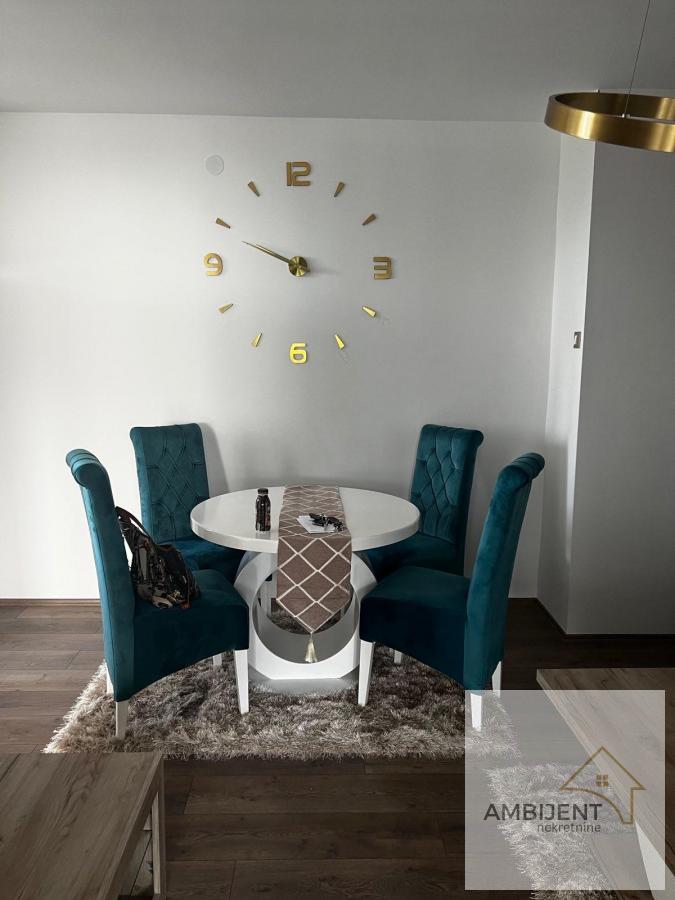 Sastoji se od, prostrane dnevne sobe sa ugaonom garniturom, klub stolom i modernim rasvetnim telom, spavaće sobe sa velikim ormarom i udobnim ležajem, moderno opremljene kuhinje sa svim elementima i novim frižiderom, kupatila sa veš mašinom i ugradnim policama, hodnika koji obezbeđuje funkcionalan raspored prostorija.