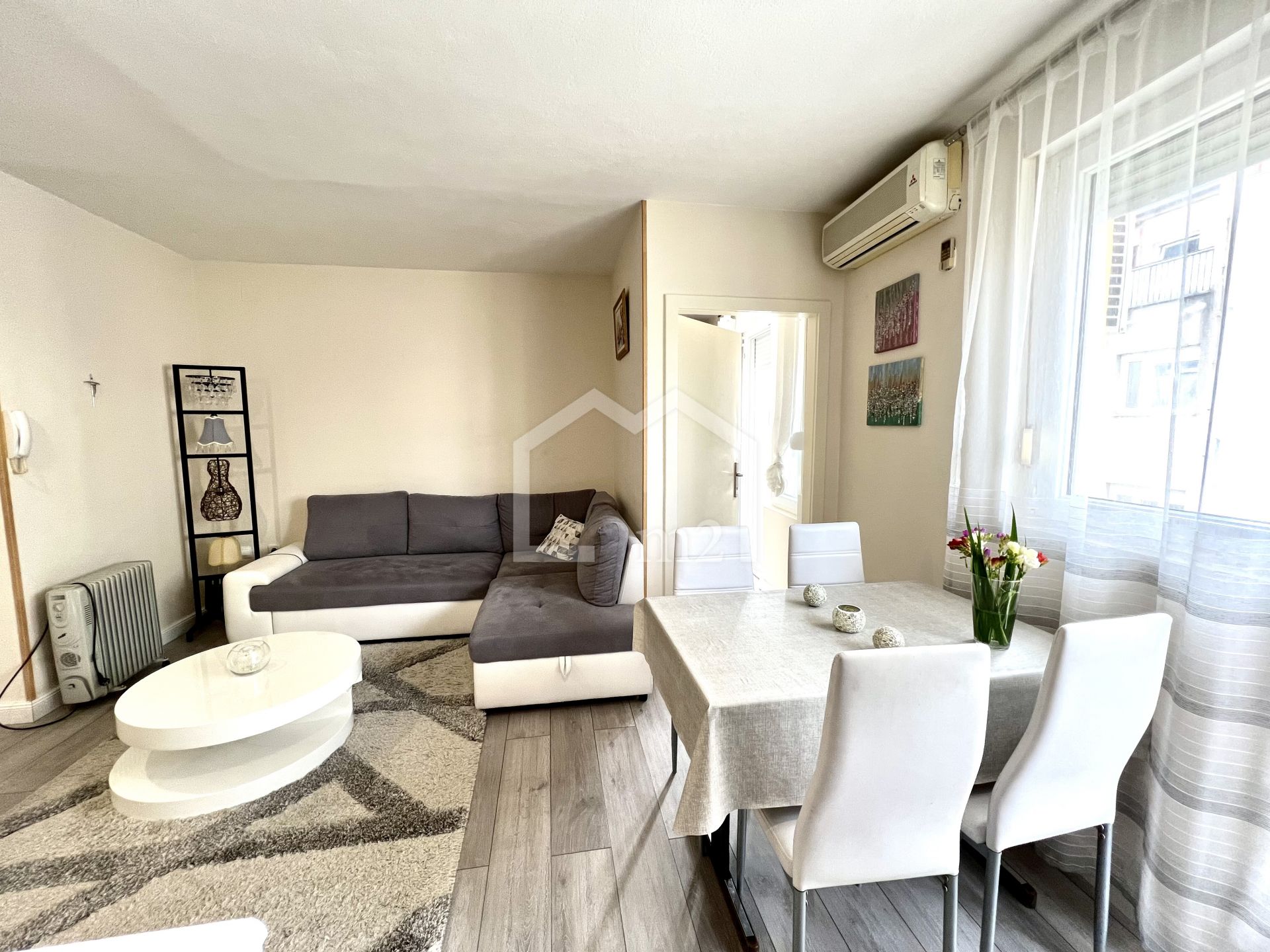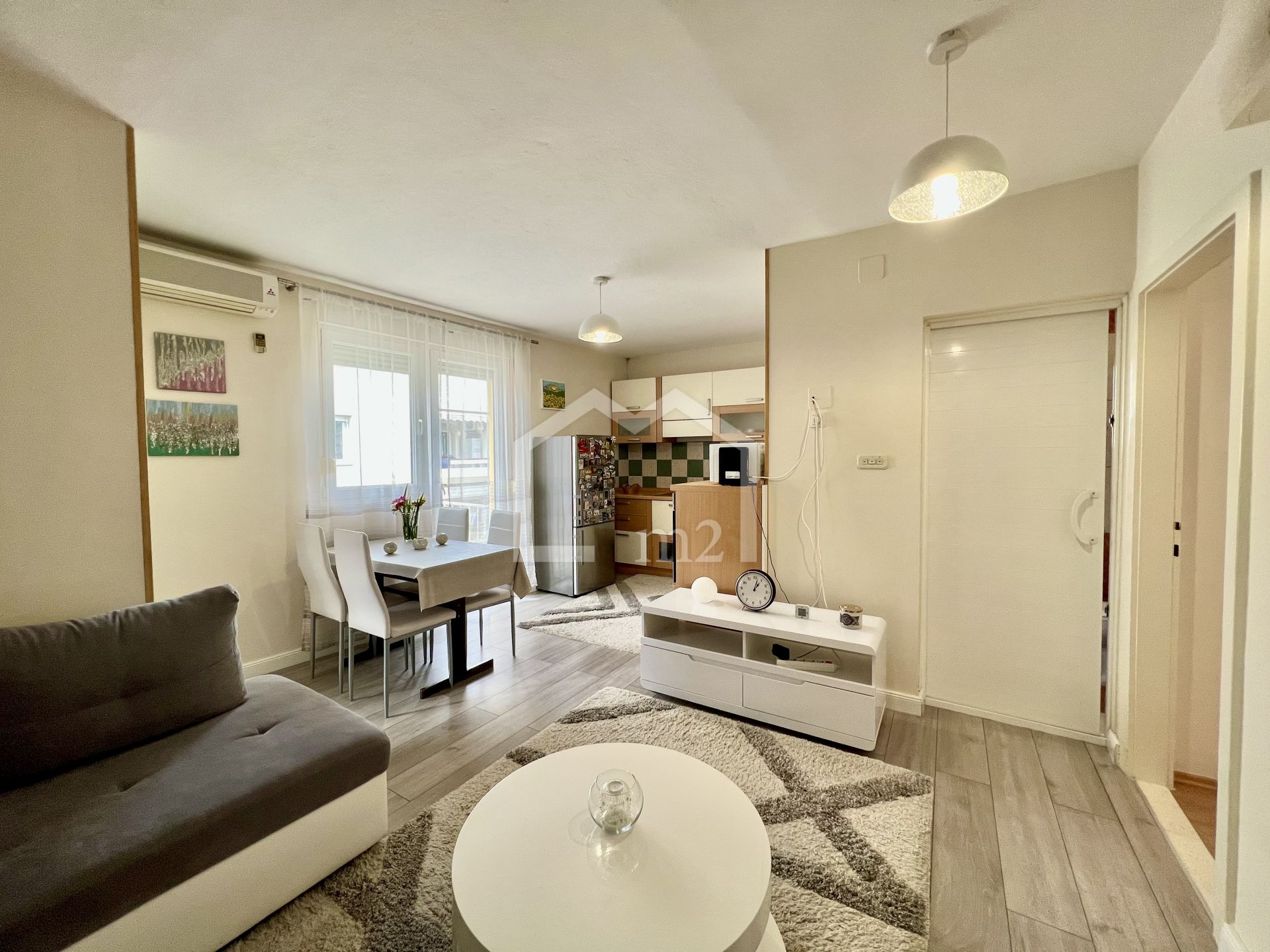 Opis: Posredujemo u najmu komfornog dvosobnog stana, koji se nalazi na odličnoj lokaciji u blizini centra grada. Smješten je na trećem katu stambene zgrade. Sastoji se od ulaznog dijela, dnevnog boravka sa kuhinjom i blagavaonom, dvije spavaće sobe, kupaone te dvije terase. Stan je potpuno namješten a posjeduje i klima uređaj, perilicu suđa, perilicu i sušilicu rublja te radijatore za grijanje u svim sobama. Osvijetljen i prozračan orijentiran sjevero-zapad. Idealna lokacija u blizini svih sadržaja potrebnih za ugodan gradski život. Kućni ljubimci nisu dozvoljeni.