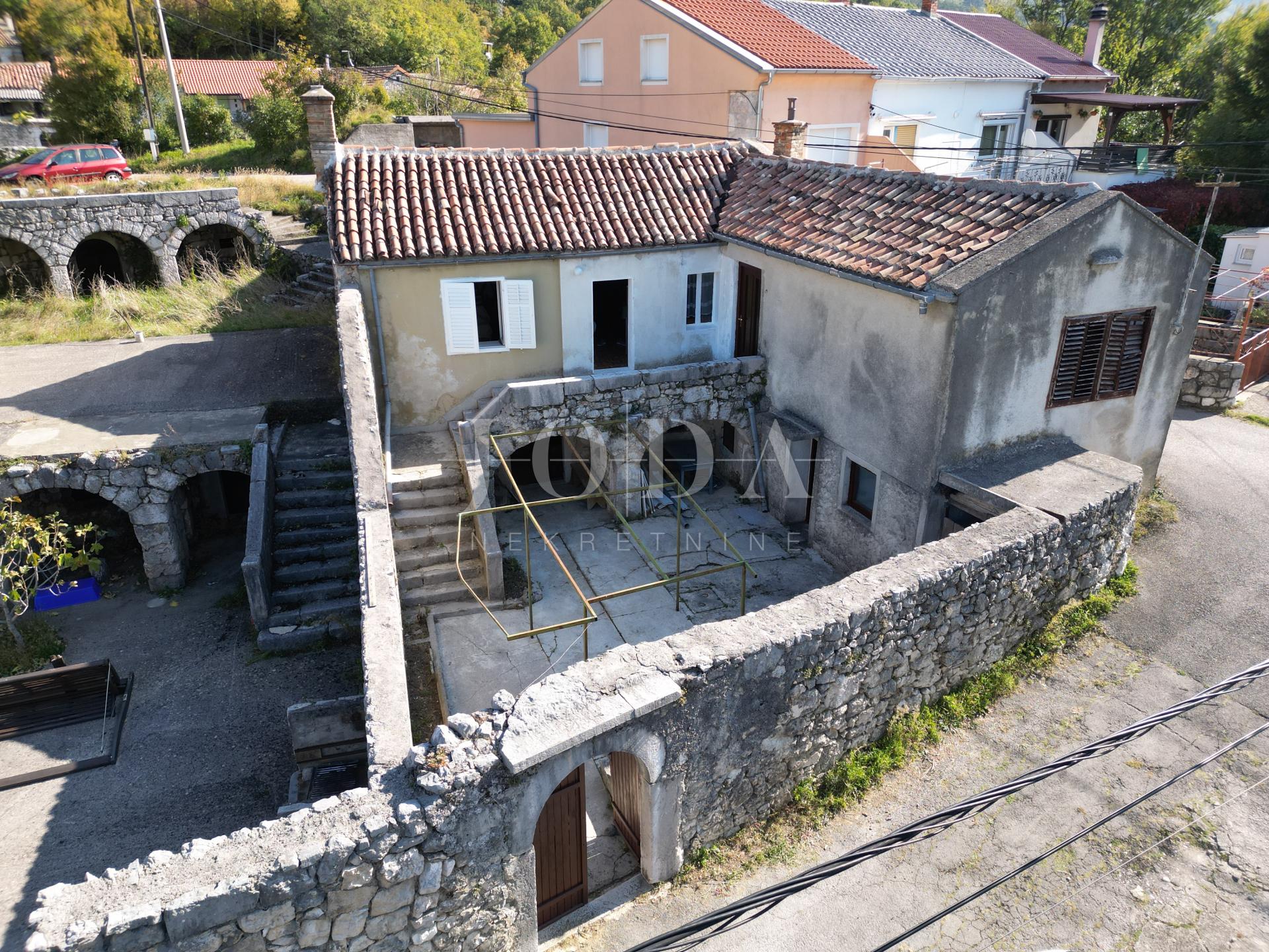 vanjske kamene stepenice vode na kat gdje je useljivi stan sa velikom kuhinjom i sobom te drugom sobom sa zasebnim ulazom.Kuća traži adaptaciju,ali za prvu ruku je useljiva.