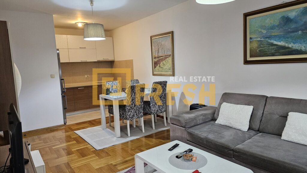Opis: Jednosoban namješten stan površine 44 m², smješten u novijoj zgradi renomiranog investitora na Starom aerodromu.