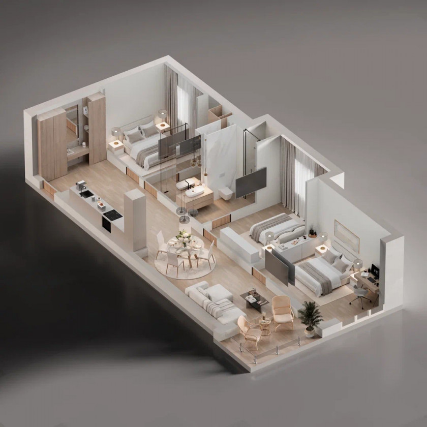 - dvosobni stanovi : od 83m2