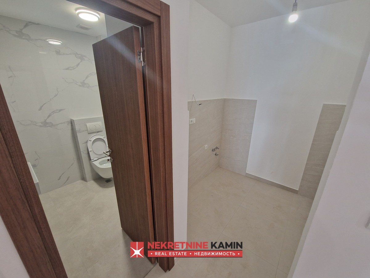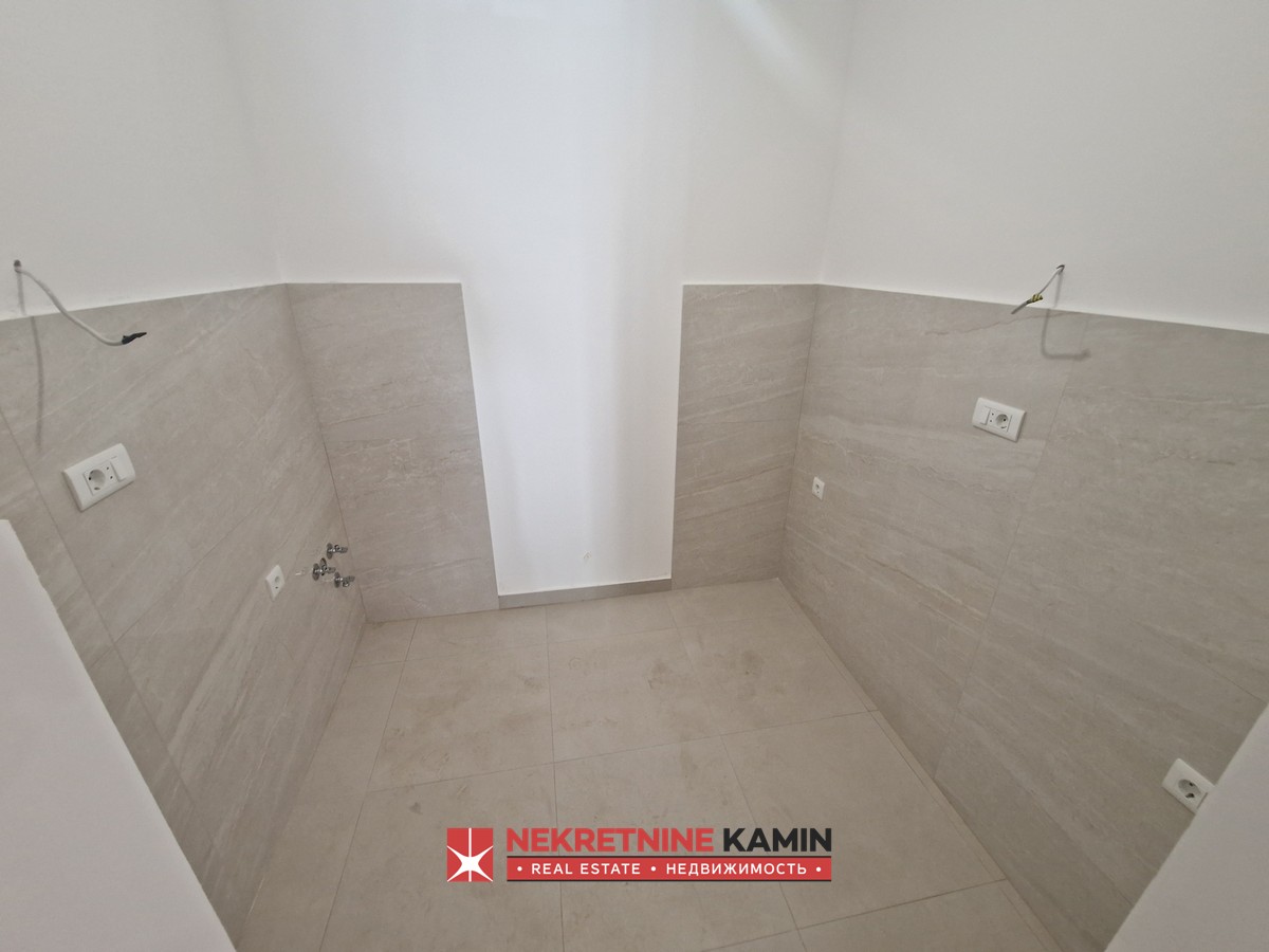 Stan je funkcionalnog rasporeda i sastoji se od predsoblja, dnevnog boravka sa kuhinjom, dve spavaće sobe, kupatila I terase.