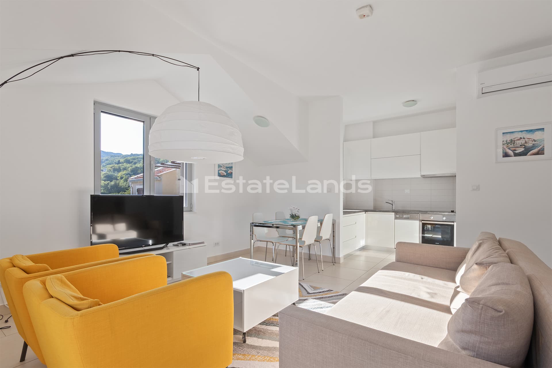 Moderan, prostran jednosoban stan smješten u prelijepom kompleksu Lavanda Bay u Morinju. Kompleks se nalazi u mirnom području i uključuje spa centar i infinity bazen. Samo je 100 metara od plaže, restorana i supermarketa. Stan nudi prelijep pogled na Bokokotorski zaliv.