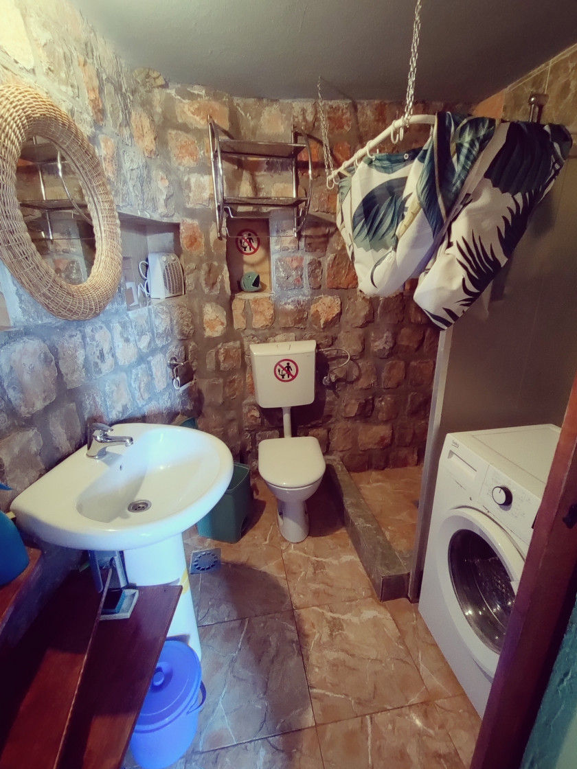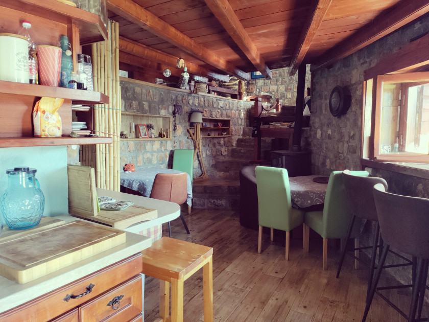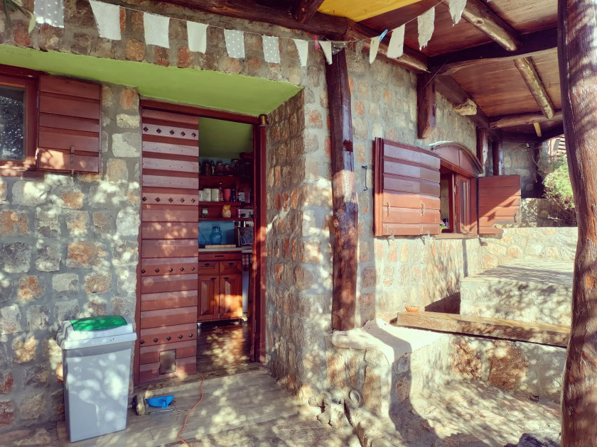 Opis: Duplex kamena kuca, ali studio. Dole kuhinja sa trpezarijom, wc i tus, pec na drva, Masina za sudove. Na sprat spava soba ceo sprat, ima 4 kreveta. Pogled na more, vocna basta, prva linija od vode.