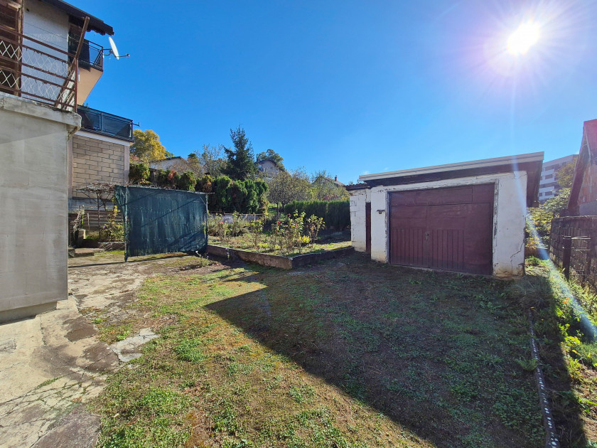 U dvorištu se nalazi garaža za jedno vozilo i šupa za drva.