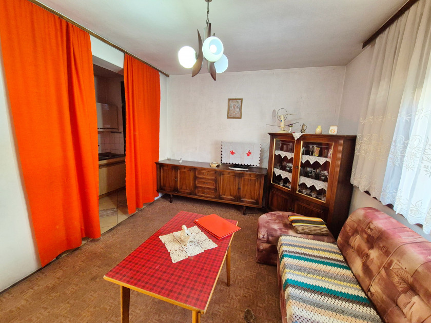 U prizemlju se nalaze dnevna soba s kuhinjom, dvije sobe, hodnik, kupatilo, predulaz i ostava.