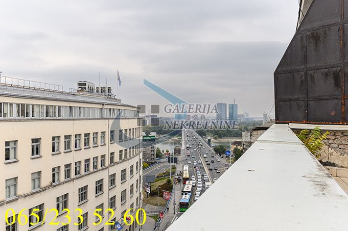 U prilici smo da Vam ponudimo konforan dvoiposoban stan na šestom ujedno i poslednjem spratu spratu u reprezentativnoj zgradi građenoj 30-ih godina prošlog veka, sa liftom. Zgrada je sa raskošnim mermernim ulazom, spolja i unutra izuzetno dobro održavana i očuvana. Stan je jednostrano orijentisan ka ulici, funkcionalnog rasporeda prostorija, izuzetno svetao i bez veće buke zbog spratne visine. Veliki dnevni boravak je podeljen na dva dela. Ukras stana je velika terasa od oko 25m2 koja se može preurediti u mini oazu za uživanje, pogleda ka Brankovom mostu, reci i gradu. Za kompletno je renoviranje te pruža mogućnost kupcu da prostor adaptira u skladu sa svojim željama i potrebama i da ga u potpunosti prilagodi sebi.