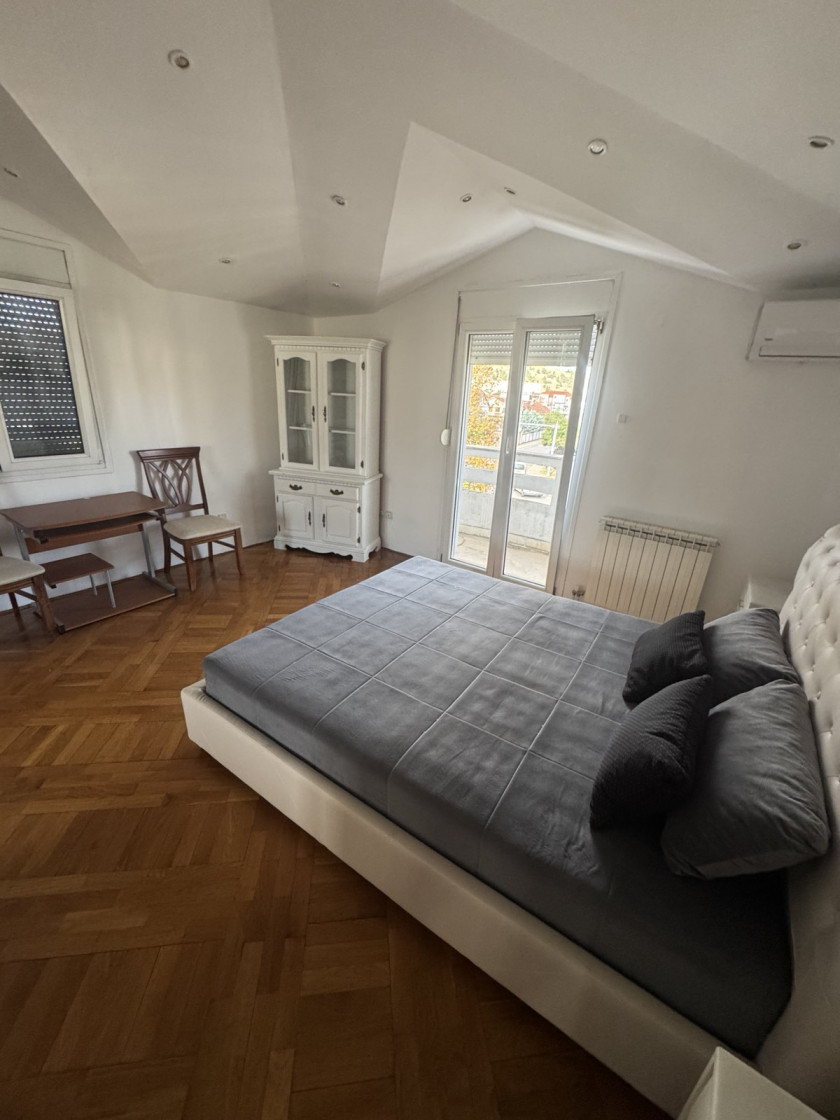 Opis: Iznajmljuje se kompletno opremljena kuća 250m2 na samom početku Zagoriča. Kuća je raspoređena na dvije etaže, ima veliko i uređeno dvorište sa dosta zelenila, a svaka prostorija ima izlaz na posebnu terasu. Raspored prostorija u kući je idealan, svaka prostorija ima dosta svjetlosti, a takođe dosta su prostrane i funkcionalne. Struktura kuće: ulazni hodnik, veliki dnevni boravak, kuhinja, trpezarija, četiri spavaće sobe, dva kupatila, ostava, predsoblje i pet terasa. Cjelokupan namještaj je visokog kvaliteta, u potpunosti očuvan i praktičan za korišćenje. Kuća posjeduje veliku ogradu, elektronsku kapiju takođe št garantuje dodatnu privatnost i sigurnost. Izdaje se na duži vremenski period uz obavezan depozit.