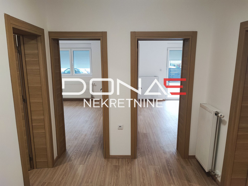 Opis: Na prodaju trosoban stan koji se nalazi na prizemlju zgrade u mirnom delu Apelovca. Stan je površine 68 m² i sastoji se od prostranog hodnika, kuhinje sa trpezarijom iz koje se izlazi na veliku terasu, dnevnog boravka, dve spavaće sobe, kupatila i posebnog toaleta (WC-a). Uz stan se dobija jedno parking mesto i podrumska prostorija. Grejanje je etažno na struju, što omogućava potpunu kontrolu troškova. Stan je uknjižen kao privatna svojina, udeo 1/1.