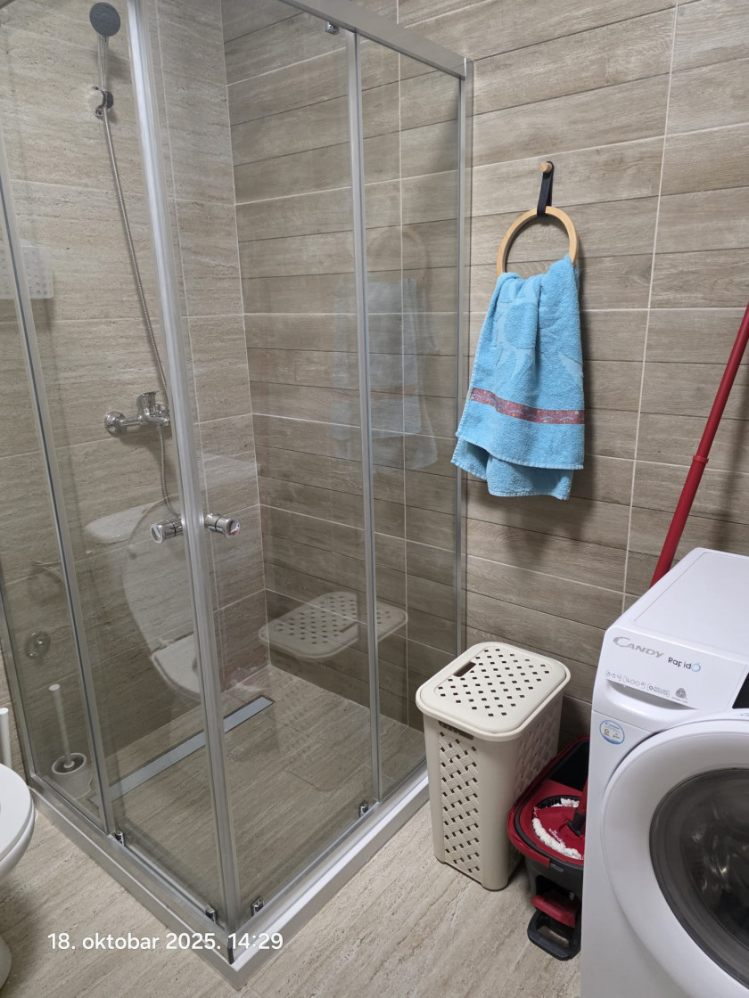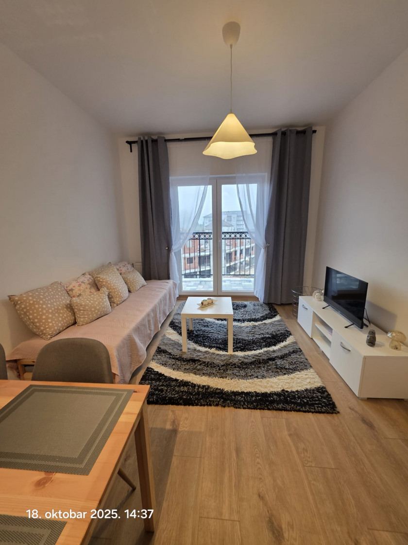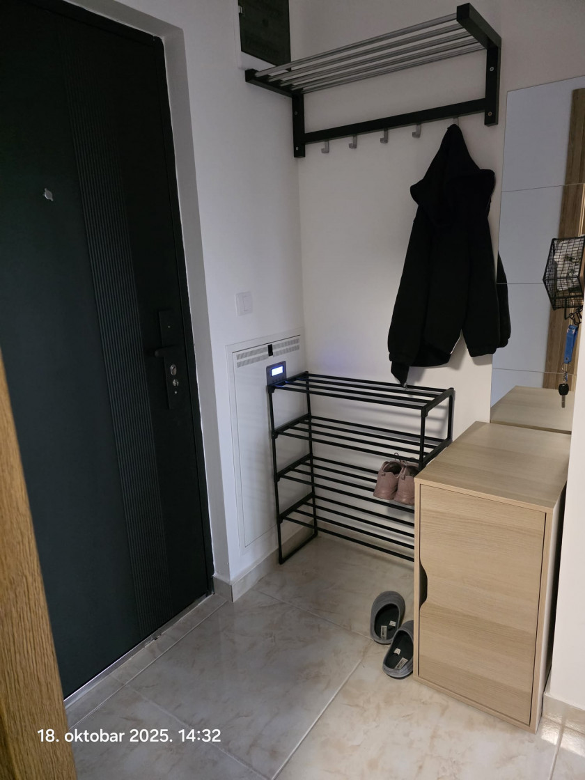 Nalazi se na visokom prizemlju i sastoji se od predsoblja, dnevnog boravka sa kuhinjom i trpezarijom, spavaće sobe, kupatila i terase. Grejanje je etažno na struju. Jugoistočno je orijentisan, što mu obezbeđuje obilje prirodnog svetla i prijatnu atmosferu. Stan je opremljen sa novim nameštajem. Besplatni parking ispred zgrade.