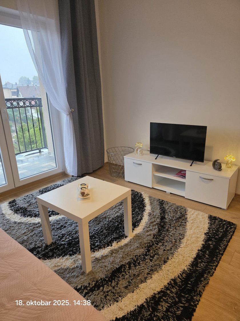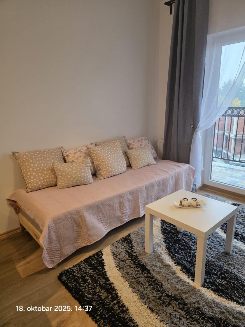 Opis: Izdaje se kompletno opremljen stan površine 31.51m2 u centru Čajetine, ul.Veljka Stamatovića 12B.