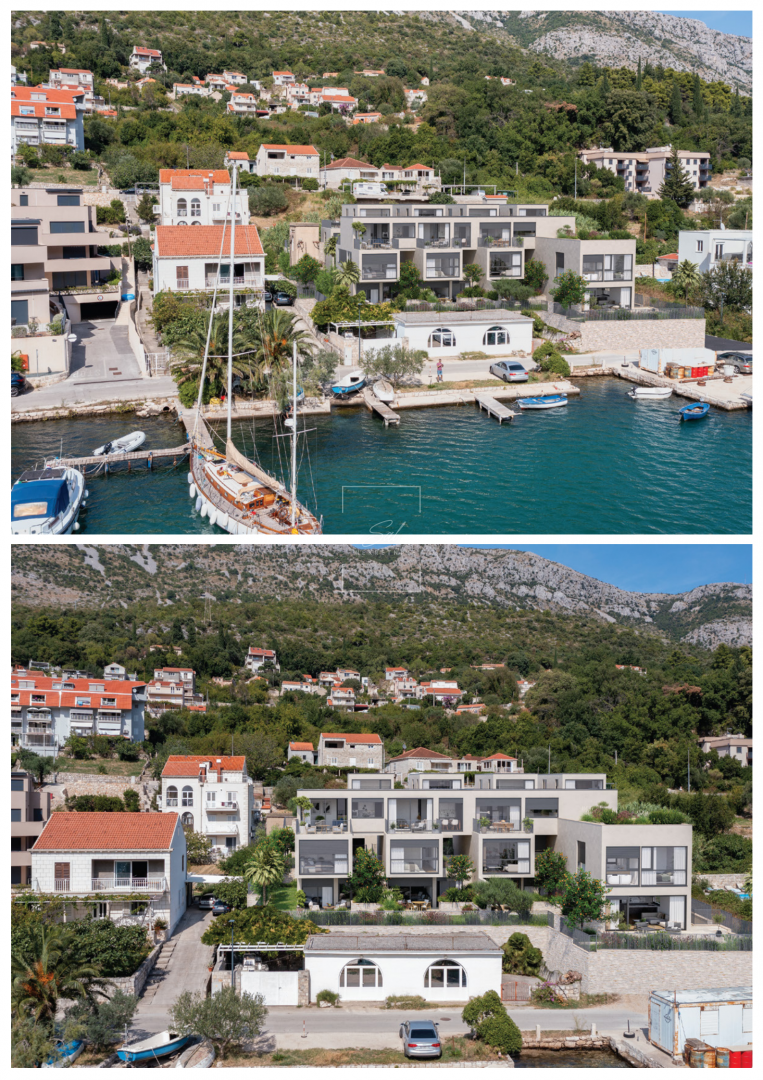 Novogradnja se nalazi u neposrednoj blizini marine Dubrovnik, na iznimno atraktivnoj lokaciji uz more. Dio je ekskluzivnog kompleksa od četiri objekta, projektiranih tako da se savršeno uklapaju u prirodni ambijent kaskadastog terena, omogućujući svakom stanu panoramski pogled na more....
