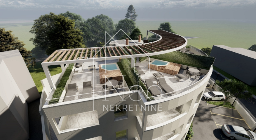 Stanu pripada krovna terasa od 71,58 m2 s koje se pruža predivan pogled na more i otoke.
