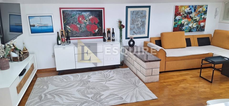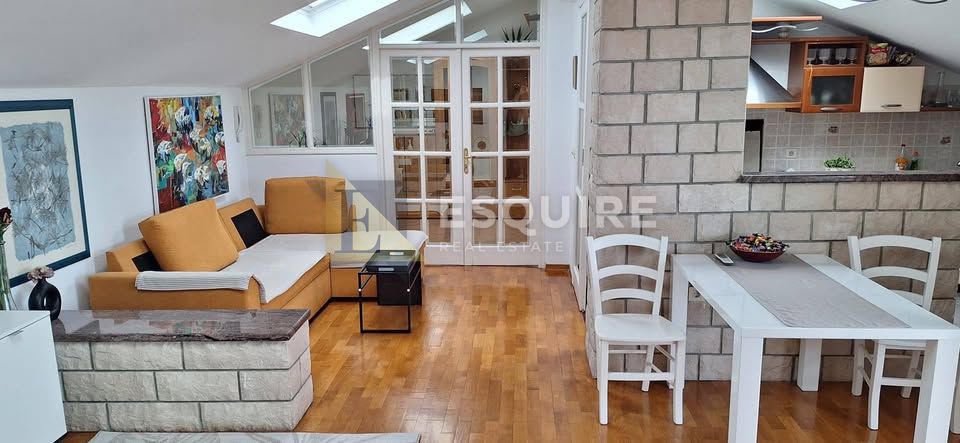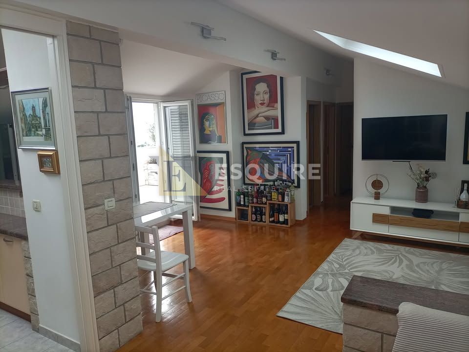 Stan je izuzetno svijetao i prozračan, opremljen Velux krovnim prozorima, a s terase se pruža panoramski pogled na grad, more i obližnje otoke.