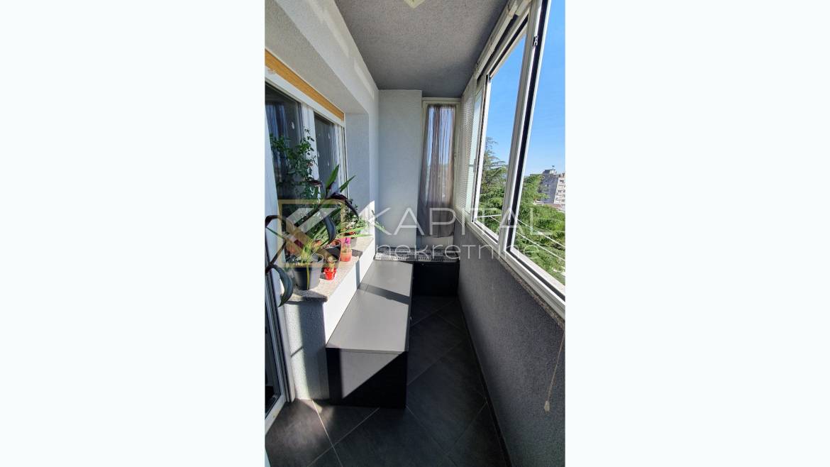 Prodaje se vrlo uredan, adaptiran i potpuno namješten 1S+DB stan na 5. katu održavane zgrade s novom fasadom (energetski obnovljena).