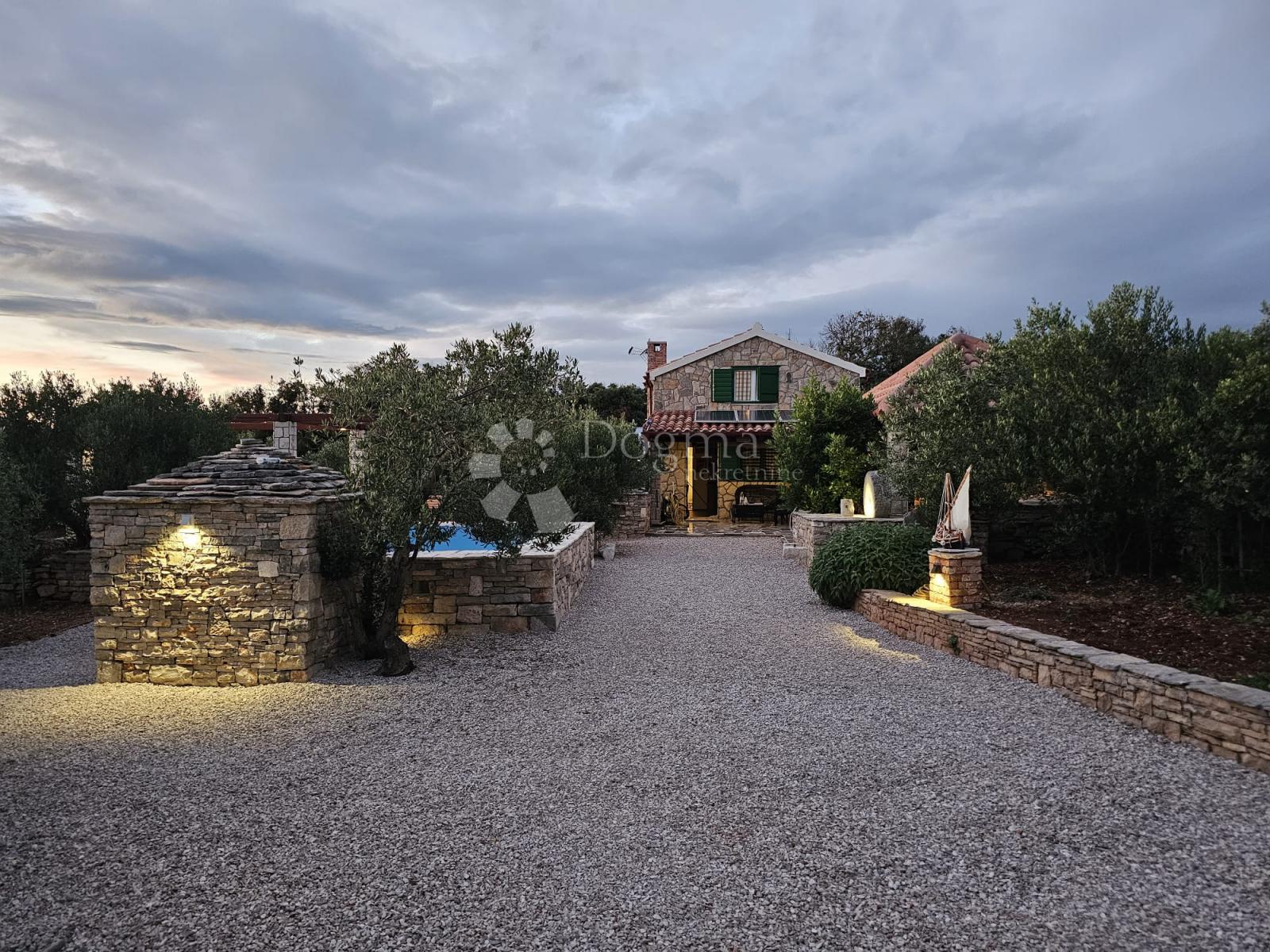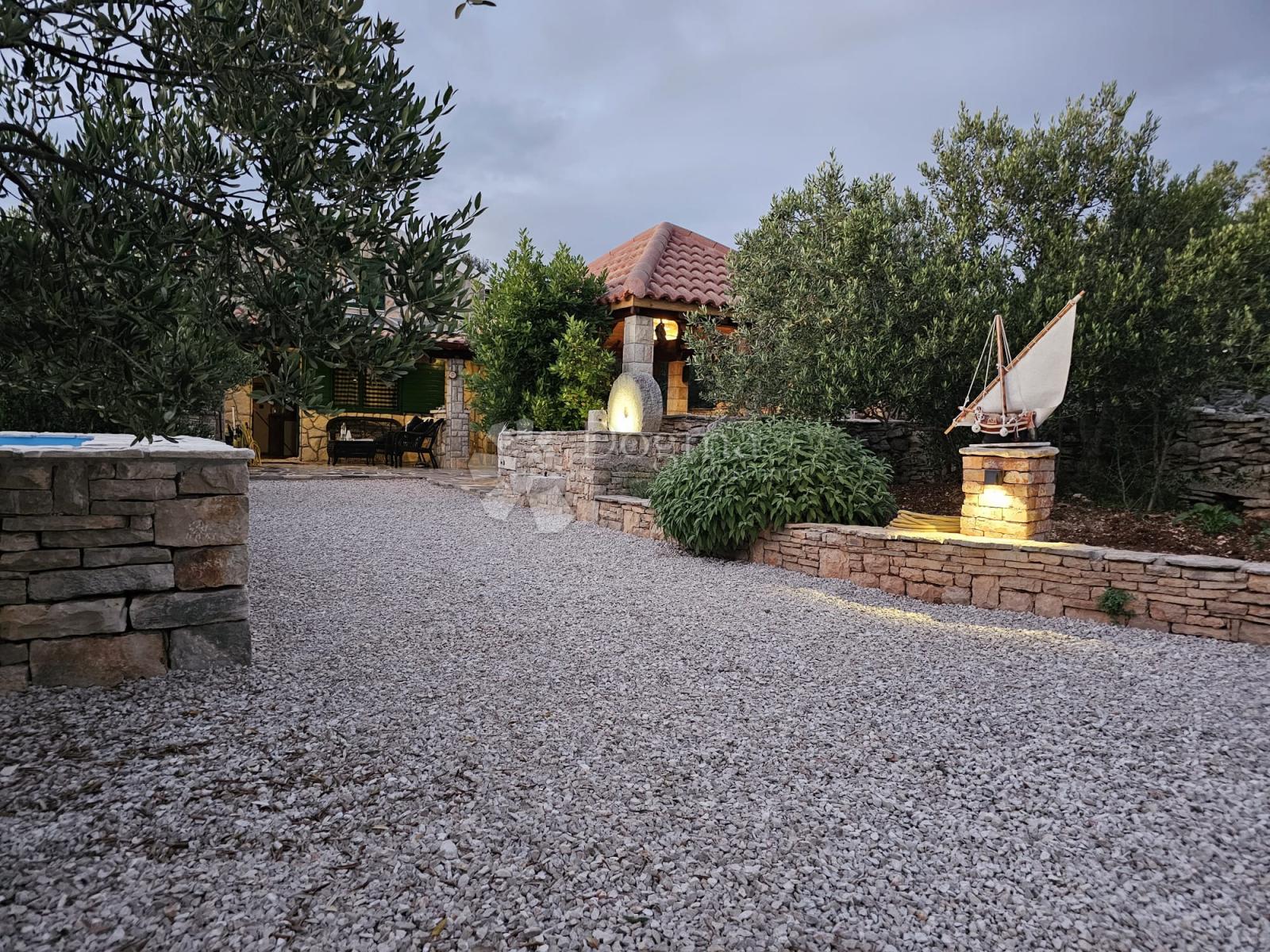 Kuća je okružena suhozidom i savršeno uklopljena u prirodni ambijent. Uživajte u natkrivenoj terasi i dodatnoj kamenoj sjenici, među maslinama i bogatim mediteranskim biljem.