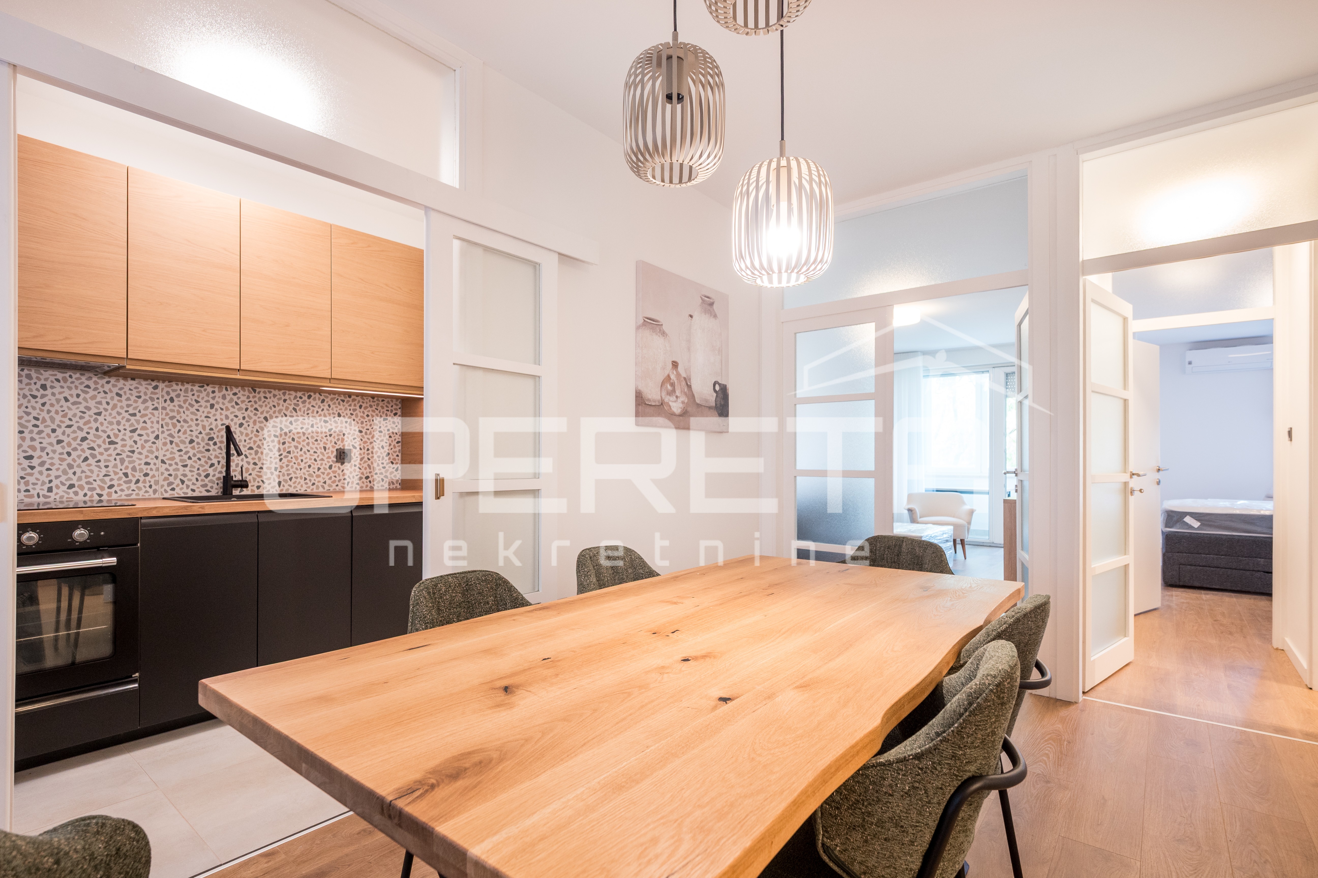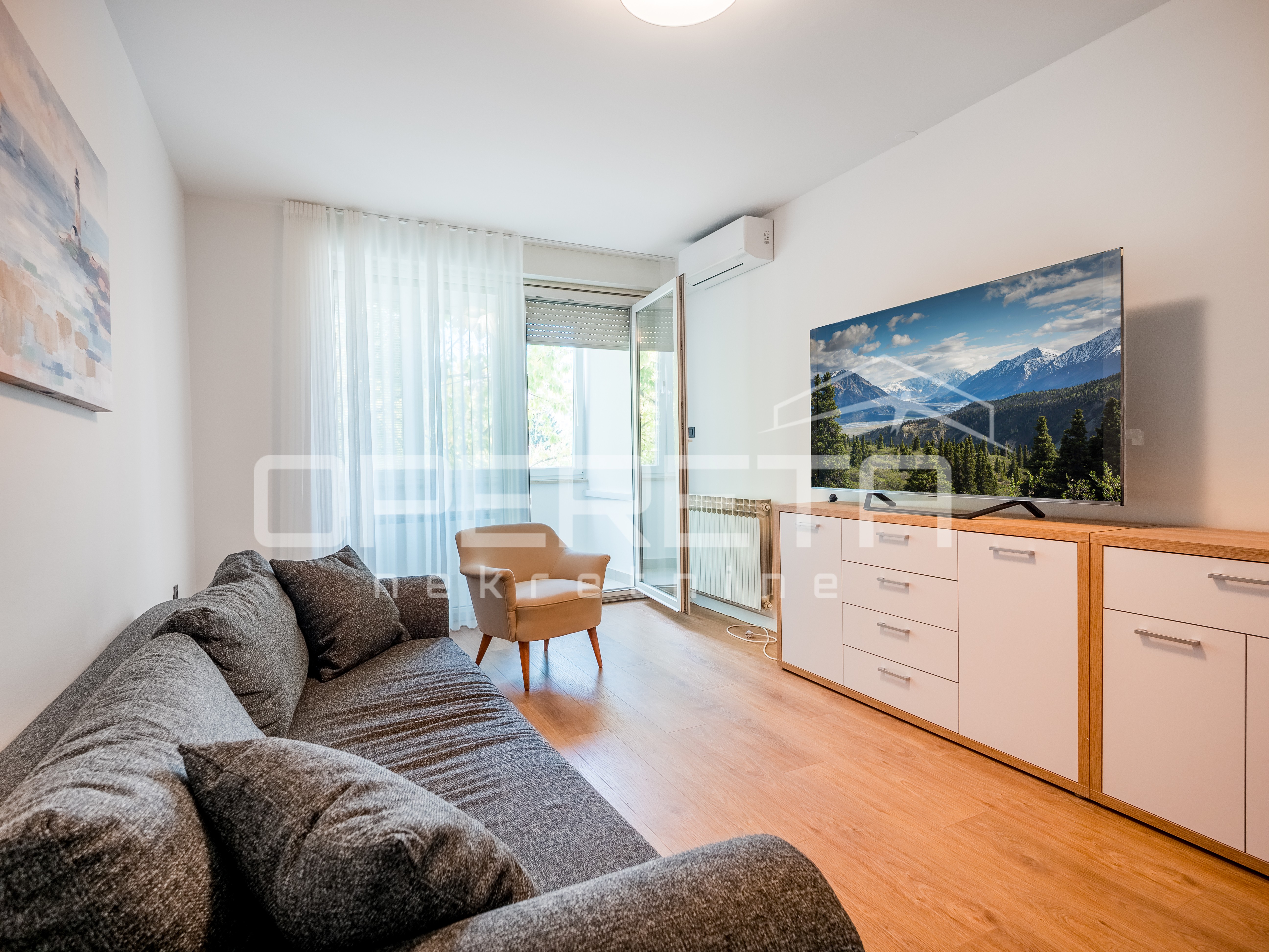 Opis: STAN, NAJAM, NOVOUREĐEN, KNEŽIJA, 2-SOBAN.Iznajmljuje se novouređeni stan na Knežiji, odlično prometno povezanoj lokaciji u blizini svih bitnih sadržaja.Stan se nalazi na drugome katu zgrade s liftom, a pripada mu i parkirno mjesto u dvorištu.Sastoji se od kuhinje, spremišta, blagovaonice, dnevnog boravka s izlazom na loggiu i prostrane spavaće sobe.Orijentiran je na jugo-zapad, jako svijetao i ugodan.Potpuno je renoviran, opremljen i namješten novim namještajem.Dostupan je odmah!