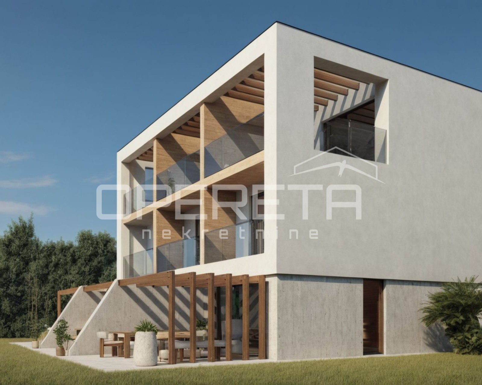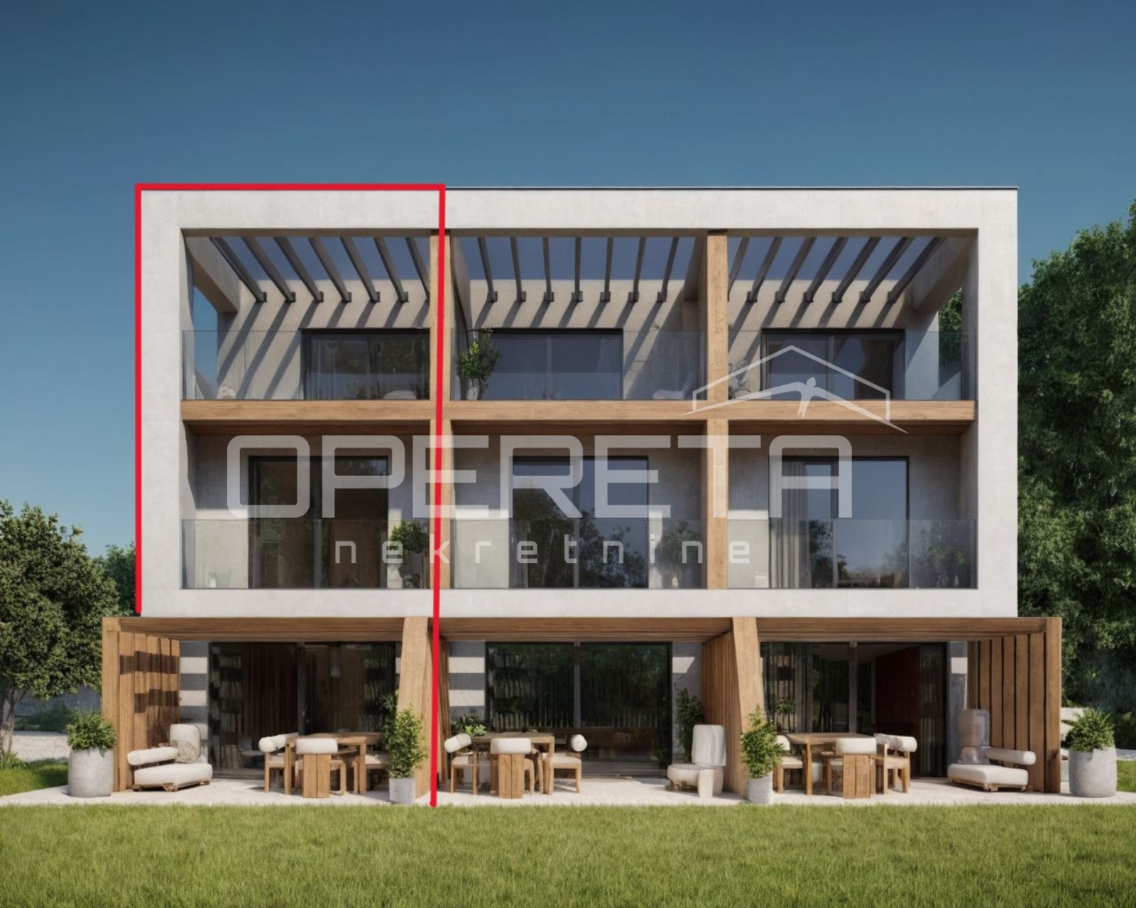 Opis: Na odličnoj lokaciji, svega 300 metara od mora, prodaje se moderna kuća u nizu, novogradnja, ukupne neto površine 115 m², raspoređena na tri etaže. Ova elegantna nekretnina osmišljena je tako da pruži savršen spoj komfora, privatnosti i luksuza, uz fenomenalan pogled na more sa svih etaža.U prizemlju se nalazi dnevni boravak povezan s kuhinjom i blagovaonicom, iz kojeg se izlazi u uređen vrt površine 71 m², gdje je predviđen jacuzzi – detalj koji dodatno naglašava luksuz i mogućnost potpunog opuštanja u vlastitom domu. Na istom nivou smješten je i toalet, dok unutarnje stepenište vodi na kat. Na prvom katu nalaze se dvije spavaće sobe, od kojih jedna ima terasu s predivnim pogledom na more, kao i zajednička kupaonica. Na drugom katu smješten je još jedan dnevni prostor koji se otvara prema prostranoj terasi od 17 m² s panoramskim pogledom na more, te dodatni toalet. Po potrebi može se prenamijeniti u dodatnu spavaću sobu.Kući pripadaju dva parkirna mjesta, a sami vrt pruža dodatnu privatnost i estetsku vrijednost....