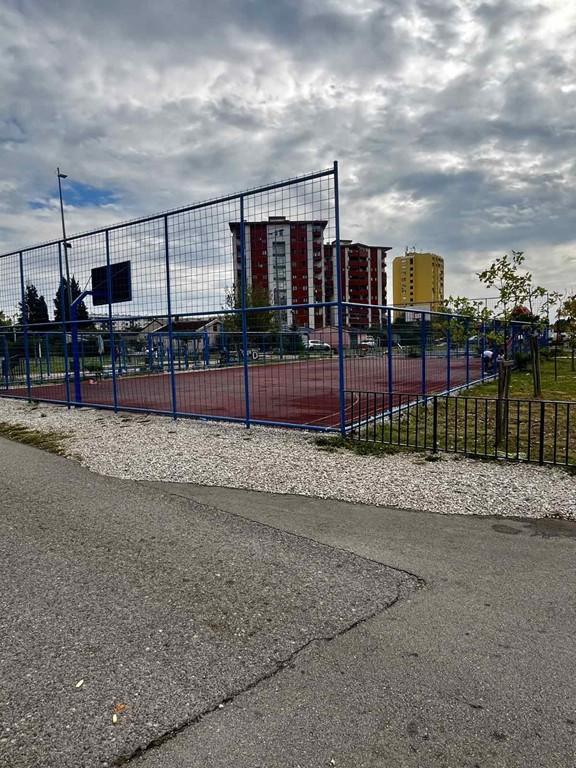 Ispred stana se nalaze tereni za fudbal i kosarku.