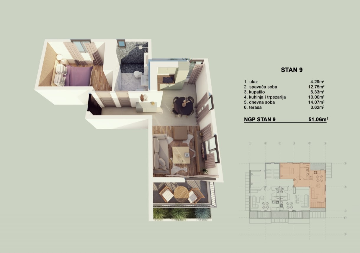 Površina: 58,06 m² + krovna terasa 51,06 m²