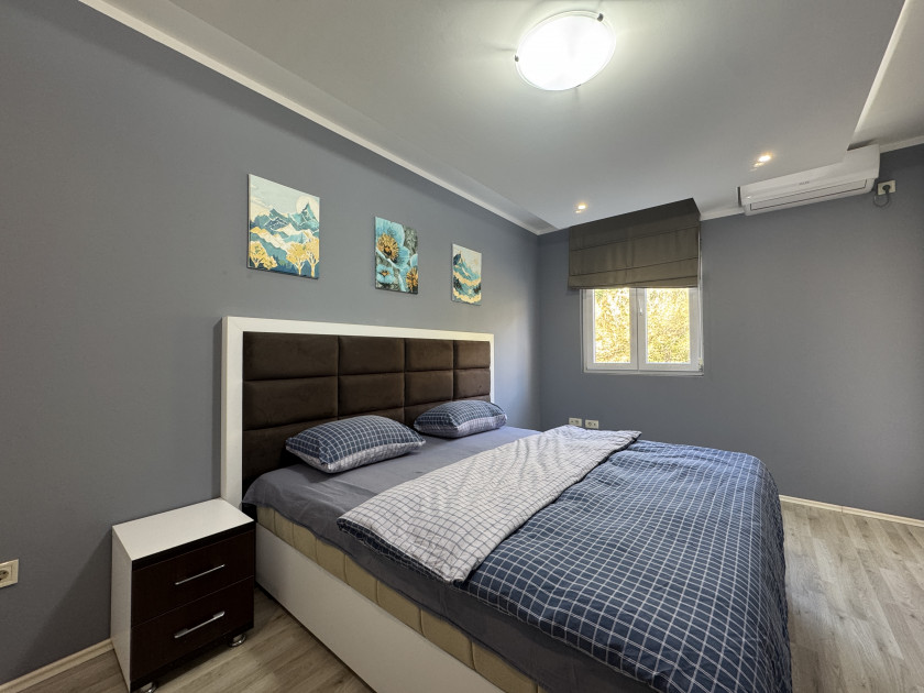 Opis: Izdaje se stan u Budvi, naselje Boljaci Do (5 minuta hoda od Mega Mall-a). Stan ima tri spavace sobe i prostran dnevni boravak, idealan je za porodicu. Opremljen je svime sto je potrebno za ugodan zivot: brzi internet, TV, klima uredjaji u svakoj sobi, elektricni kamin, rerna i mikrotalasna, masina za pranje sudova, veš mašina i veliki frizider. Dvije prostrane terase. U dvije od tri spavace sobe nalazi se francuski lezaj koji se po potrebi može razdvojiti na dva singl kreveta.