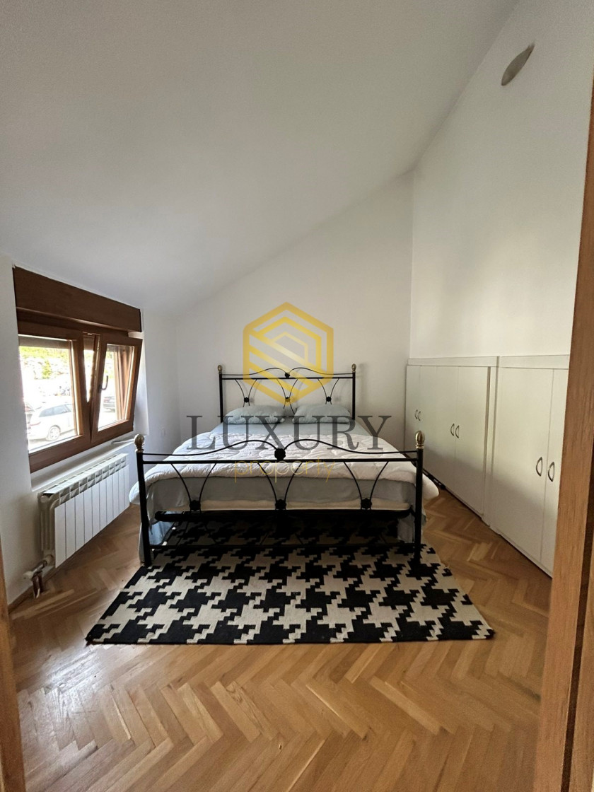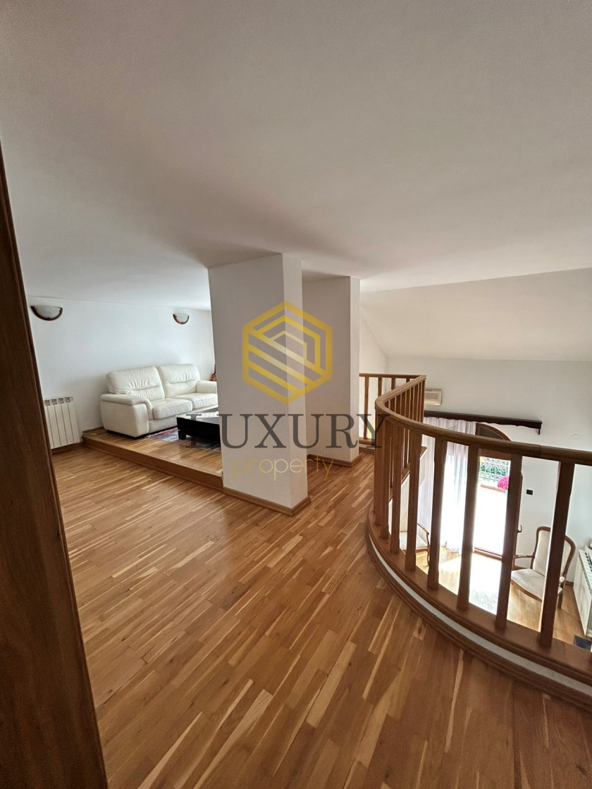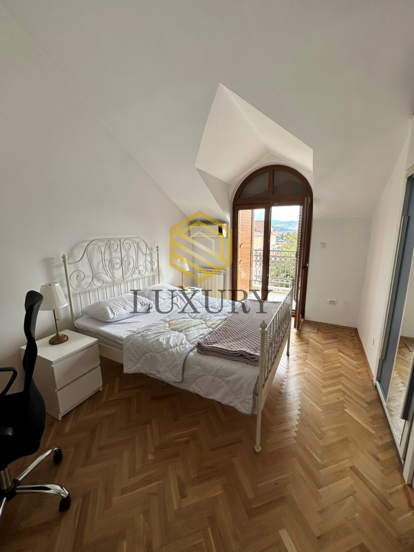 Kuca se sastoji od pet spavacih soba,tri kupatila,posebnog toaleta,veseraja,kao i prostranog dnevnog boravaka povezanog s trepezarijom i kuhinjom.Kuca posjeduje tri predivne terase,i svaka soba ima izlaz na svoju.Posjeduje garazu,kao i dodatno parking mjesto.Kuca je iz tri nivoa,i svaki nivo ima svoje predsoblje.Enterijer je svijetao,prozracan i uredjen s puno paznje,dok spoljasnjost nudi mir,sigurnost i privatnost.Lokacija pruza savrsen balans izmedju luksuznog zivljenja i blizine svih urbanih sadrzaja.