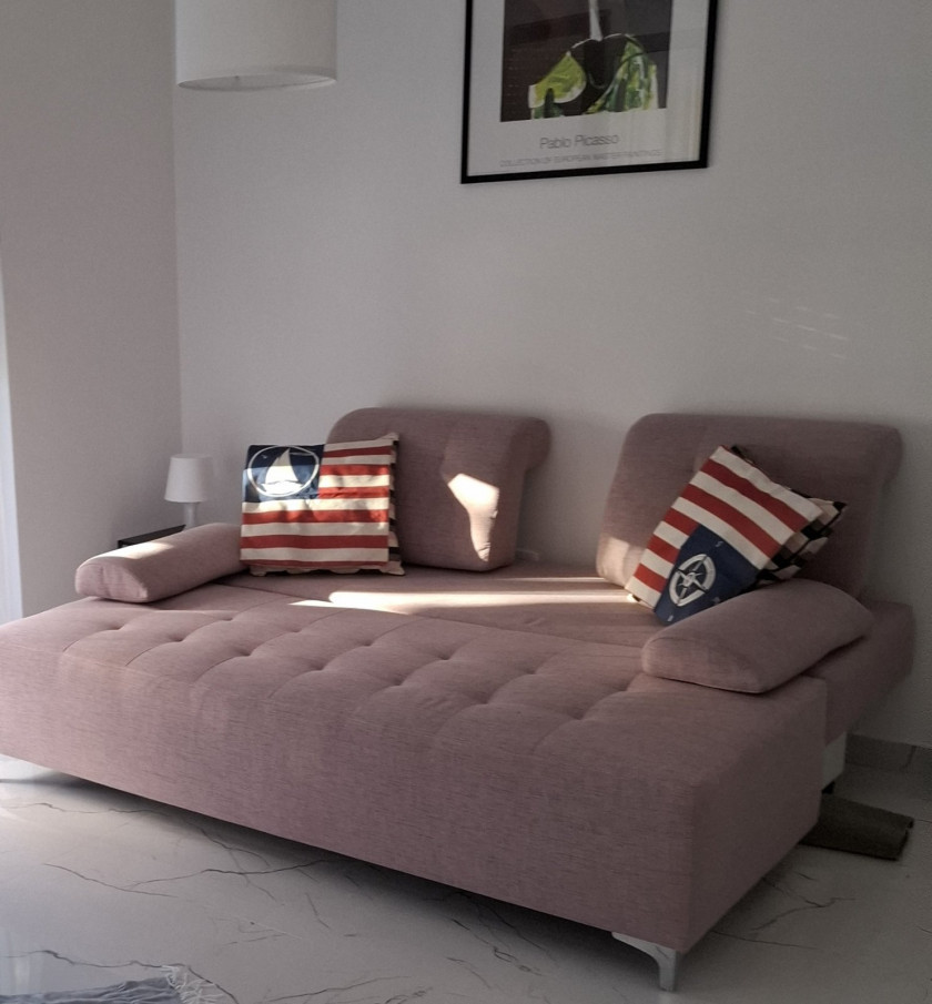 *Dnevna soba sadrzi: dvosed na rasklapanje, stocic i tv, dodatni (nov) lezaj na naduvavanje, ormar, okrugli kuhinjski sto i stolice itd...