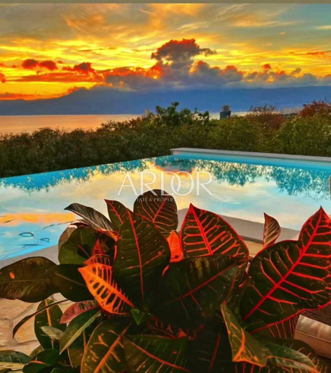 Opis: Na iznimno mirnoj i intimnoj lokaciji u Kostreni, svega 900 m od mora i šetnice, smještena je prizemnica s panoramskim pogledom na Kvarnerski zaljev. Okružena uređenom okućnicom od 1.333 m², pruža potpunu privatnost i autentičan mediteranski ugođaj. Nekretnina ukupne površine 250 m² sastoji se od glavne kuće i zasebne gostinjske kuće – idealne za smještaj gostiju ili turistički najam.