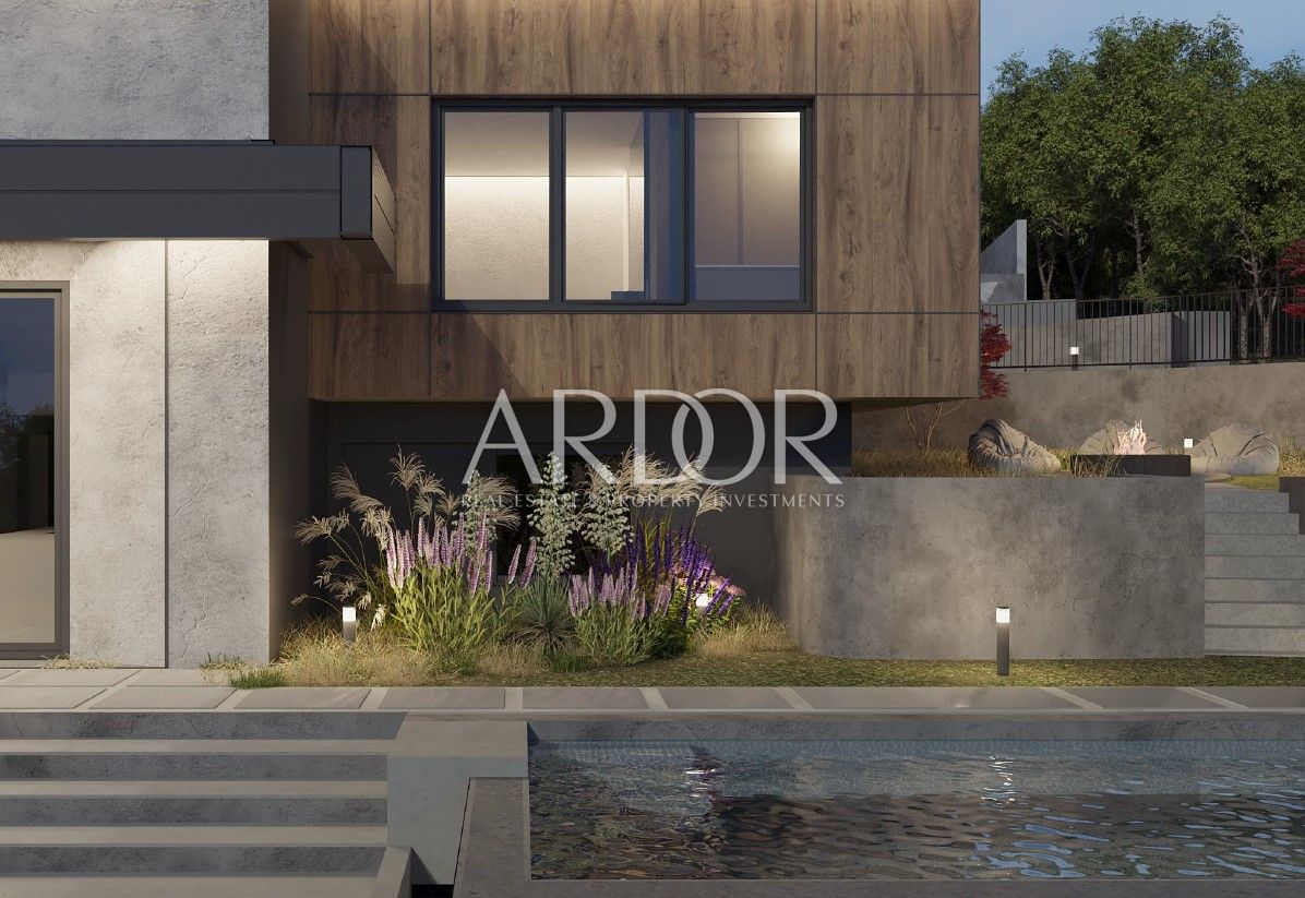 Opis: Smještena na parceli od 929 m², ova moderna i elegantna vila s panoramskim pogledom na more i otoke, na samo 500 metara zračne linije od mora, nudi pažljivo dizajniran interijer raspoređen na tri etaže, nadopunjen natkrivenim i nenatkrivenim terasama te infinity bazenom.