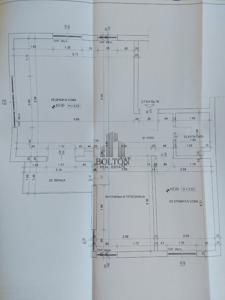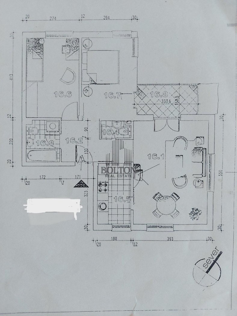 Po projektu je predviđen kao trosoban, ali je trenutni vlasnik organizovao prostor kao veoma komforan dvosoban stan, sa velikim dnevnim boravkom i trpezarijom, kuhinjom, spavaćom sobom, kupatilom i terasom. Ova raspodela može se jednostavno vratiti u prvobitno stanje ukoliko budući vlasnik želi dodatnu sobu.