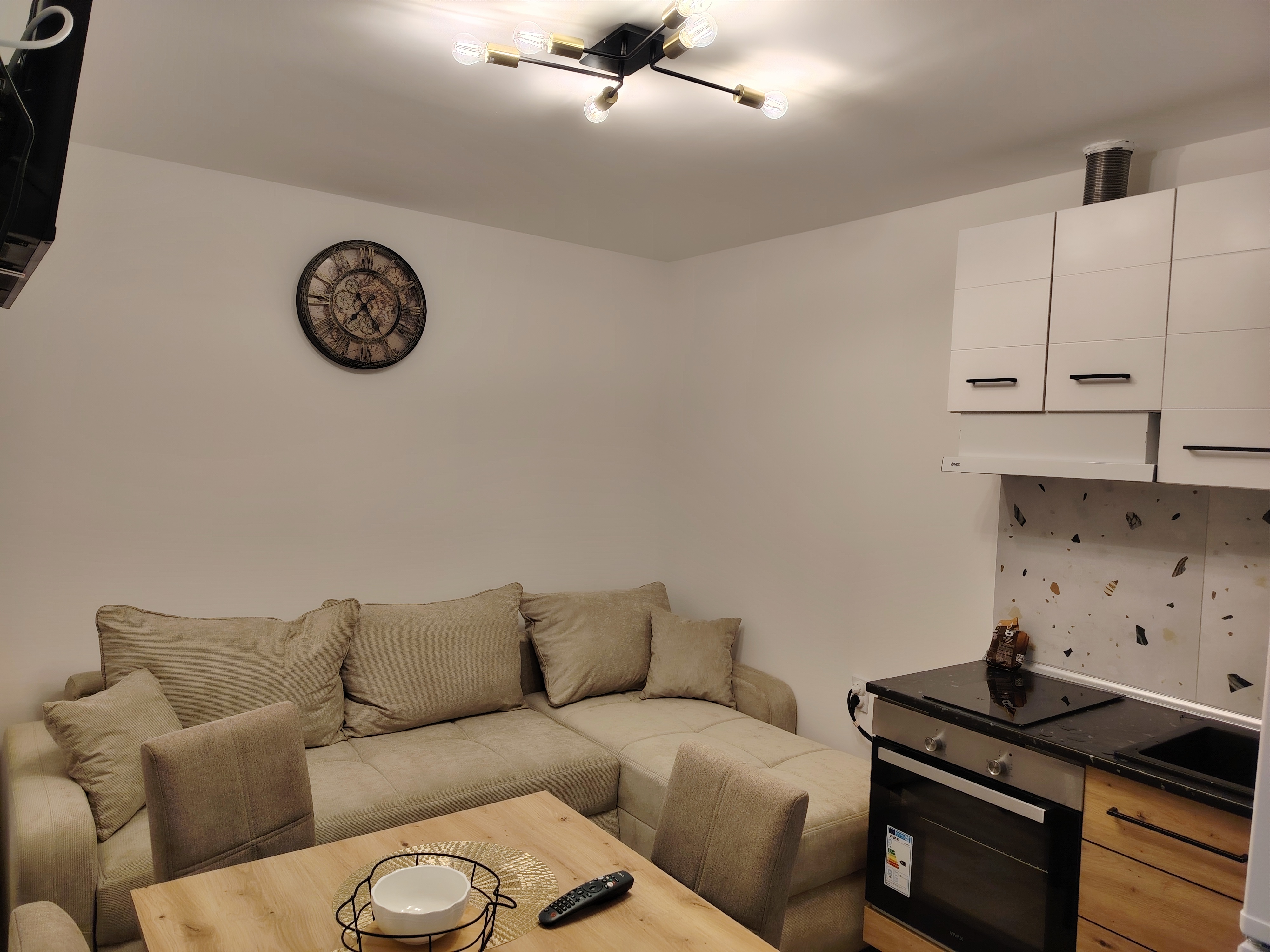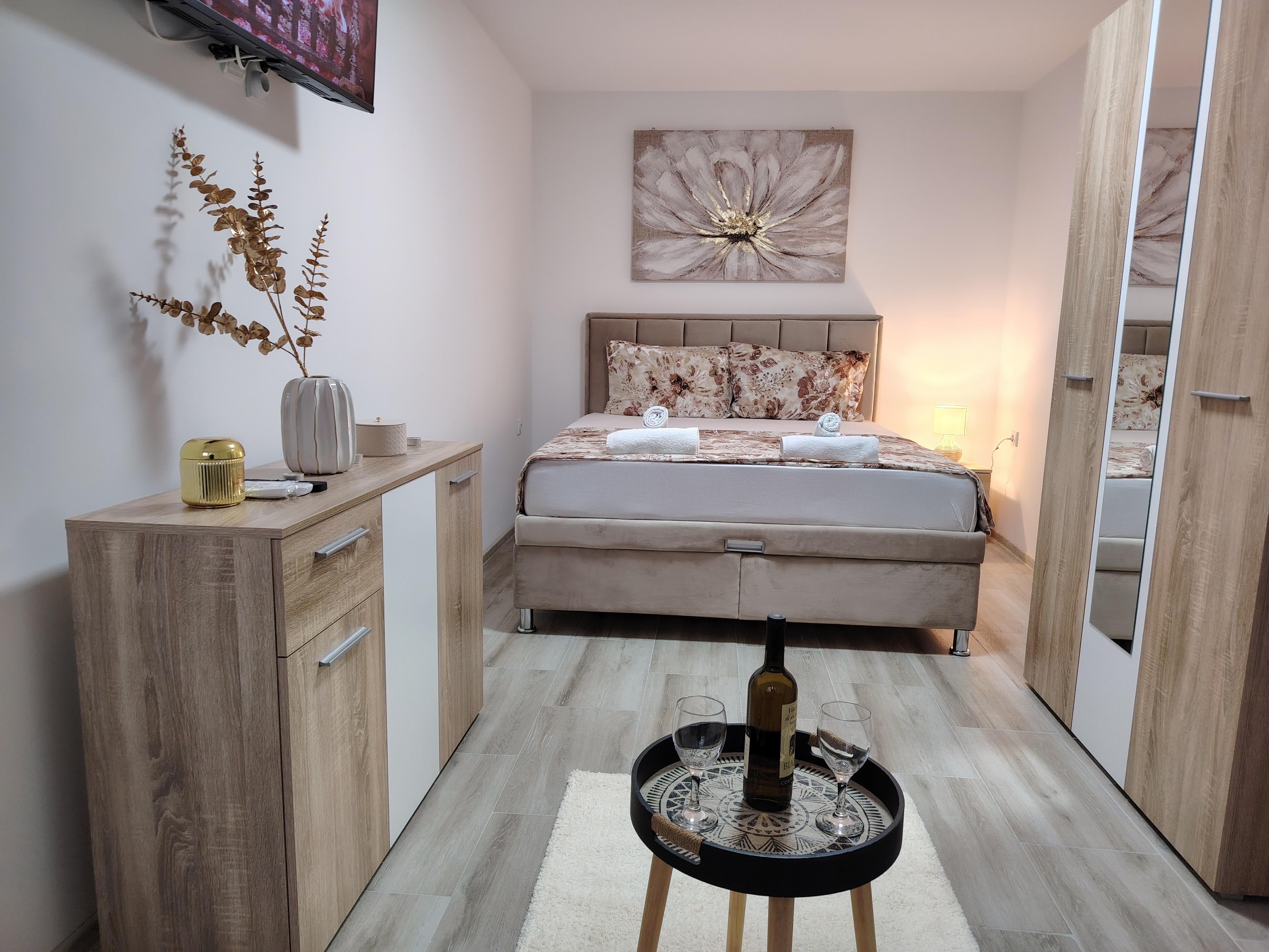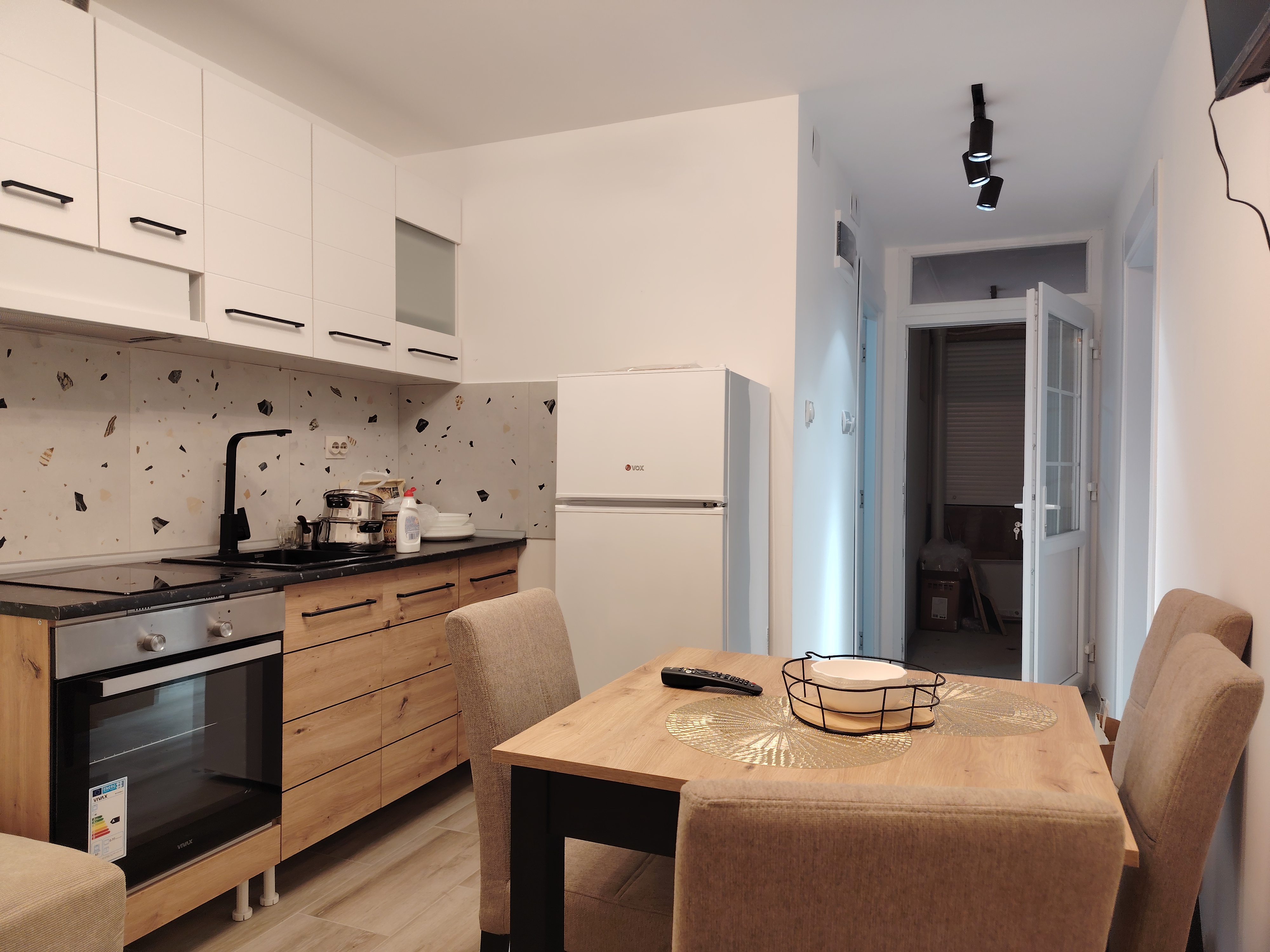 Opis: Apartman Relax De Lux nalazi se u Nišu, u ulici Bukovička. Površine je 40 kvadratnih metara i namenjen je za boravak do tri osobe. Po strukturi je dvosoban – dnevni boravak je opremljen udobnom ugaonom garniturom, dok se u spavaćoj sobi nalazi bračni krevet. Kuhinja je u sklopu dnevnog boravka i potpuno je opremljena, sa rernom, indukcionom pločom, kombinovanim frižiderom, posuđem, escajgom i trpezarijskim stolom sa stolicama. Kupatilo je moderno uređeno, sa tuš kabinom i mašinom za veš. Apartman poseduje sve što je potrebno za prijatan boravak, uključujući TV sa kablovskim kanalima, besplatan WiFi, klima uređaj, čiste peškire i posteljinu. Posebna pogodnost je što je objekat prilagođen osobama sa invaliditetom, a gostima je obezbeđen i besplatan parking. Položaj apartmana omogućava brz i lak pristup kako centru grada, tako i Kliničkom centru Niš, što ga čini idealnim izborom za goste koji dolaze zbog medicinskih potreba, poslovnih obaveza ili turistički. U blizini se nalaze brojni marketi, apoteke, kafići, restorani i stanice gradskog prevoza. Dobrodošli!