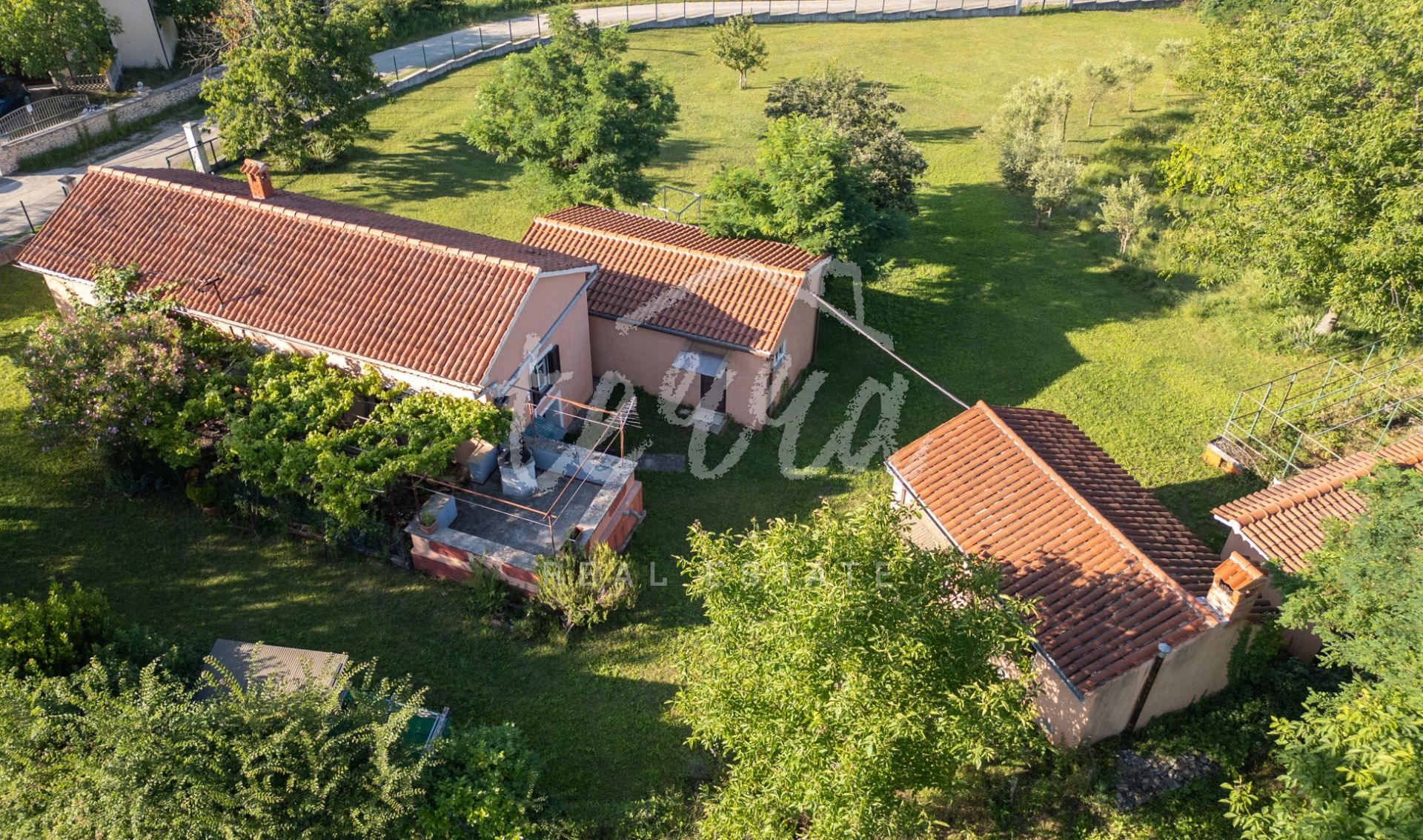 Imanje se sastoji od kuće,dvije pomoćne zgrade i garaže te spremišta ukupne površine 181m2,