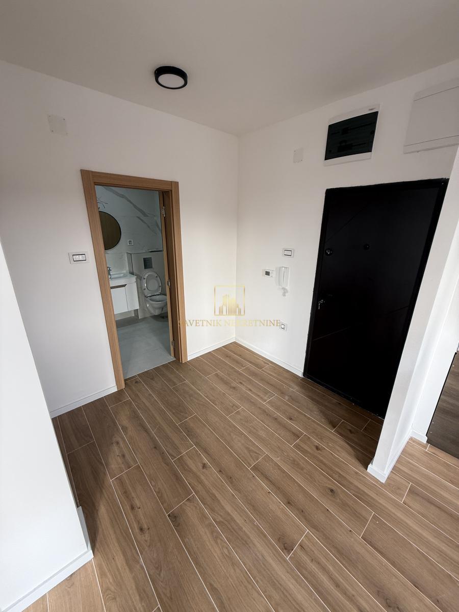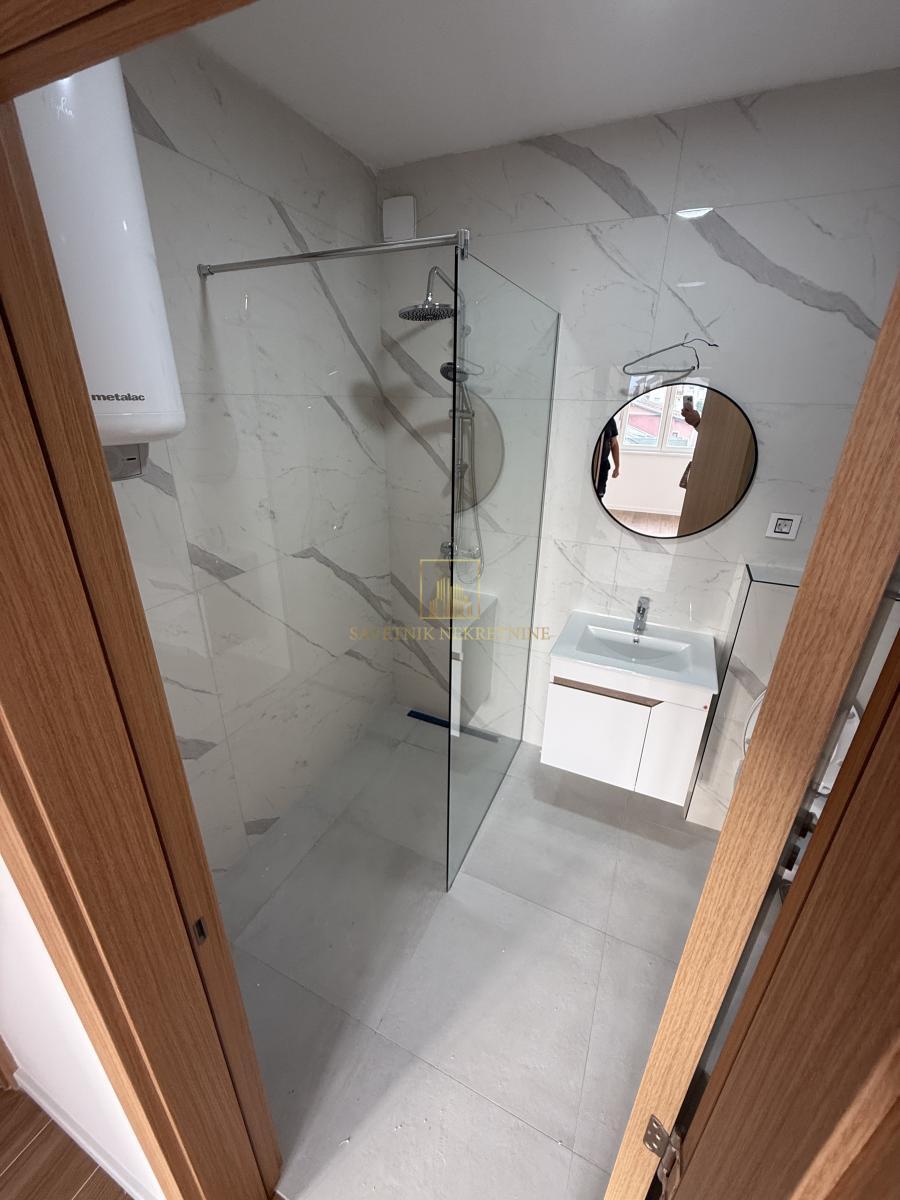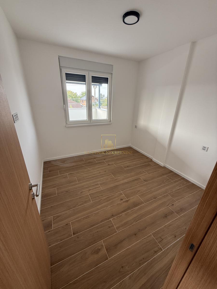 Opis: IZDAJE SE nov dvosoban stan. Stan ima opremljenu kuhinju, frižider, šporet, klimu. Ima veliku veliku terasu i gleda prema ulici. Uz stan ide parking mesto u dvorištu. Useljiv od 01.11.2025. Godine.