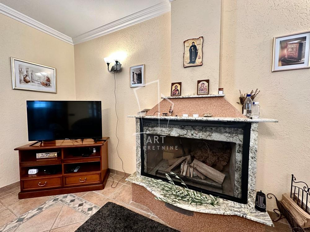 Kuća ima 4 spavaće sobe, 2 kupatila, dve dnevne sobe. Jedna velika dnevna soba sa kaminom u sklopu sa trezarijom i kuhinjom,velike terase.